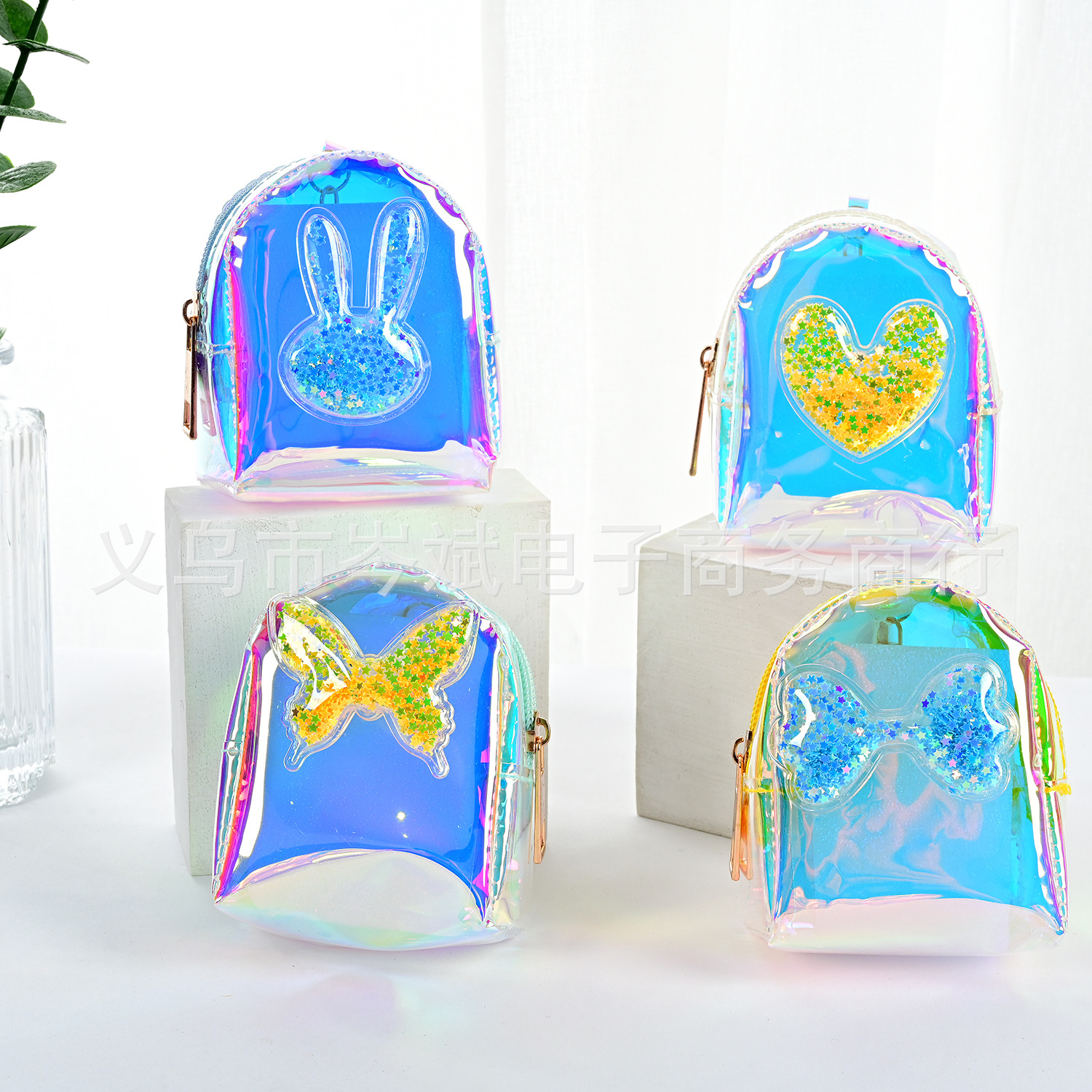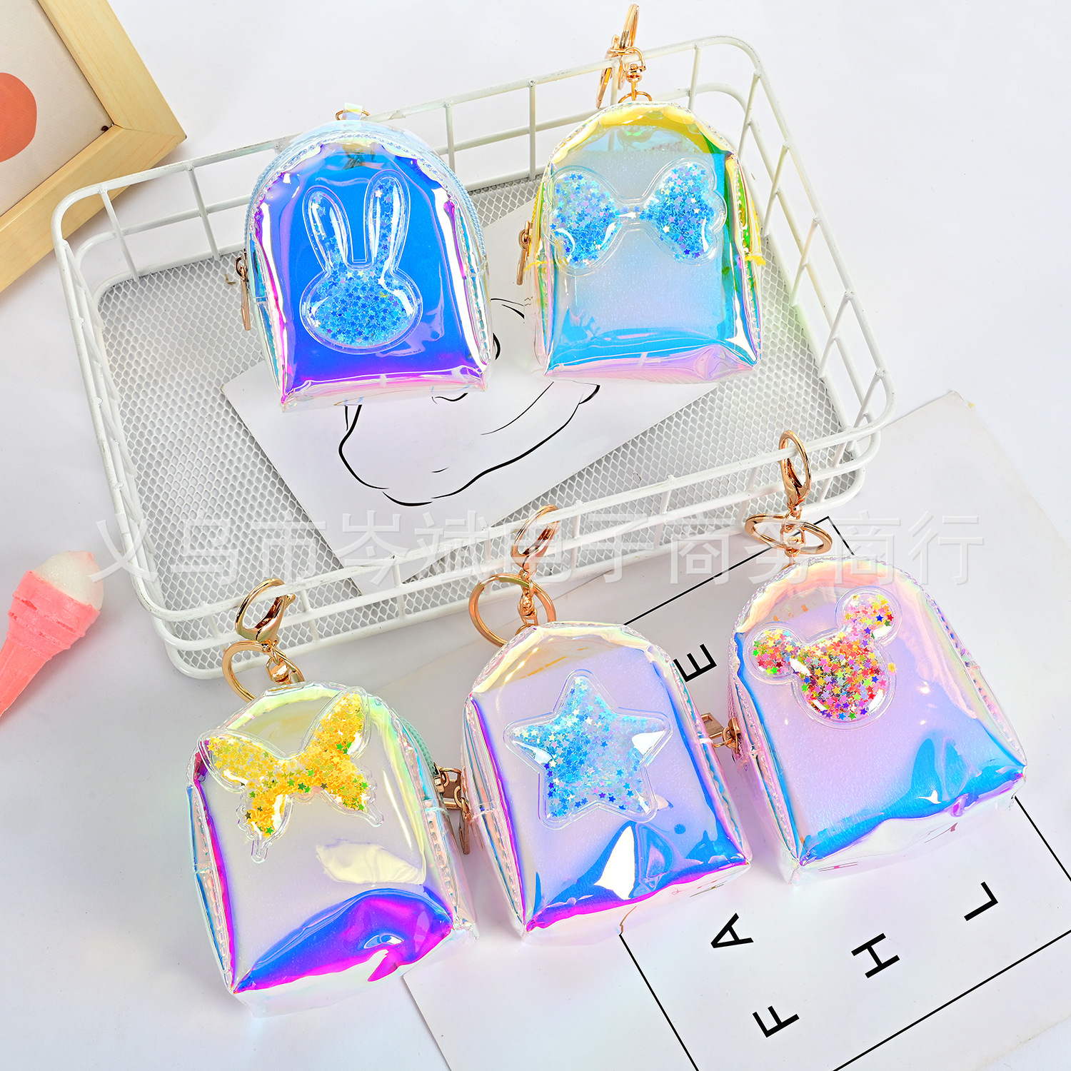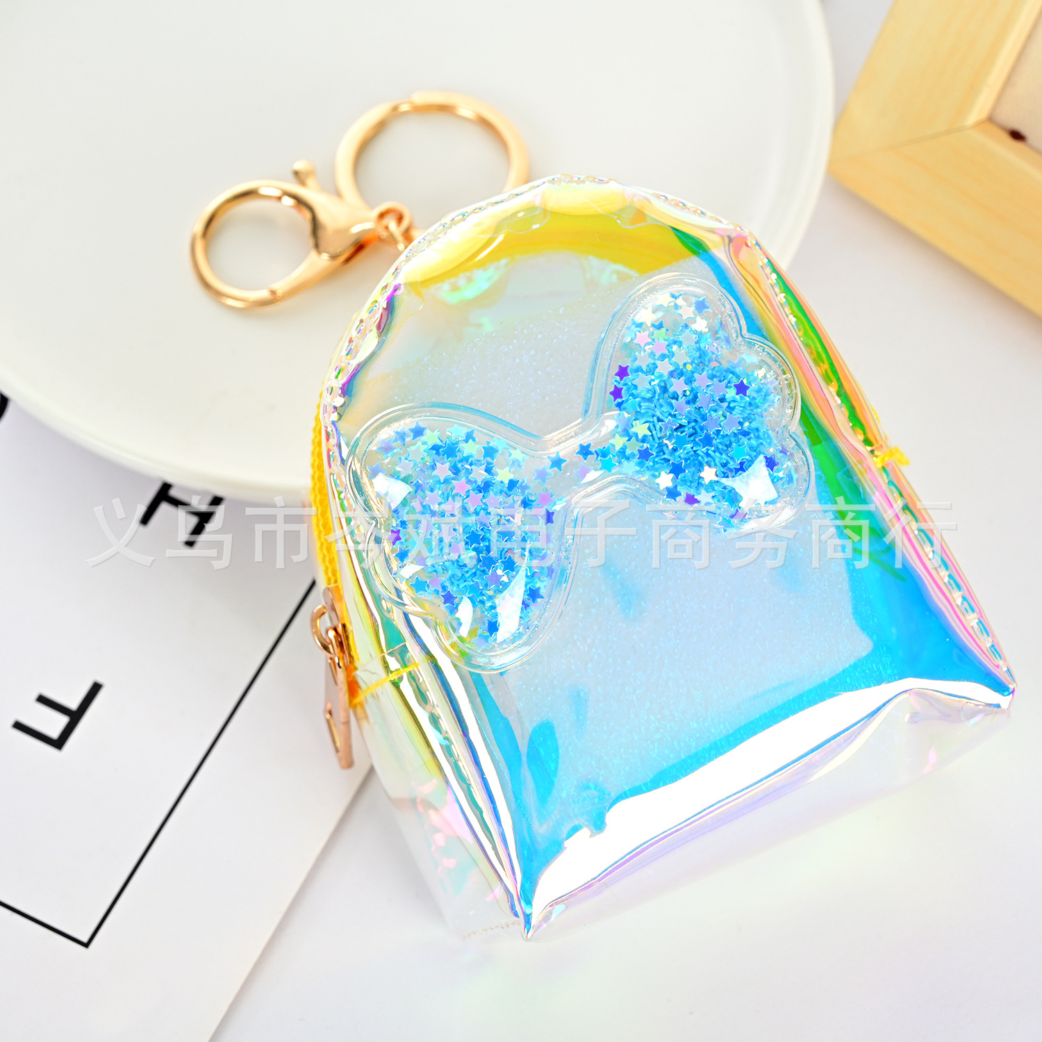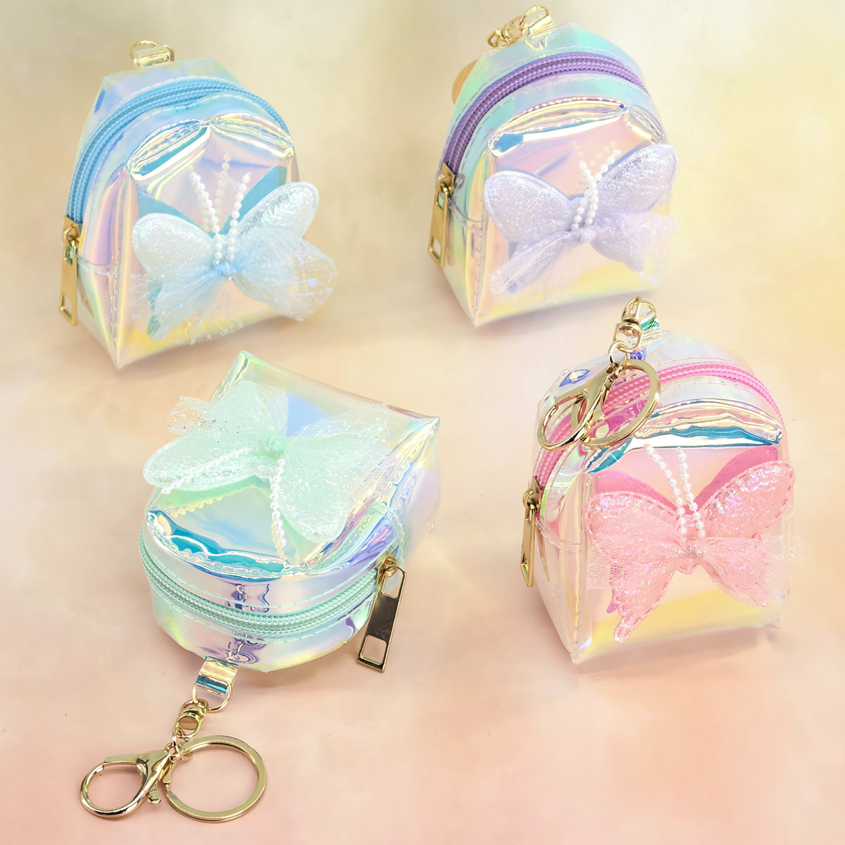 新款镭射幻彩蝴蝶结零钱包少女心钥匙扣挂件迷你小书包可爱收纳包