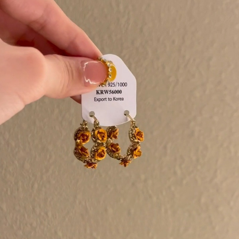 「未名花期」フランスのレトロな黄色のバラの耳は夏の新型の軽豪華な黄色のバラのイヤリングを掛けます。