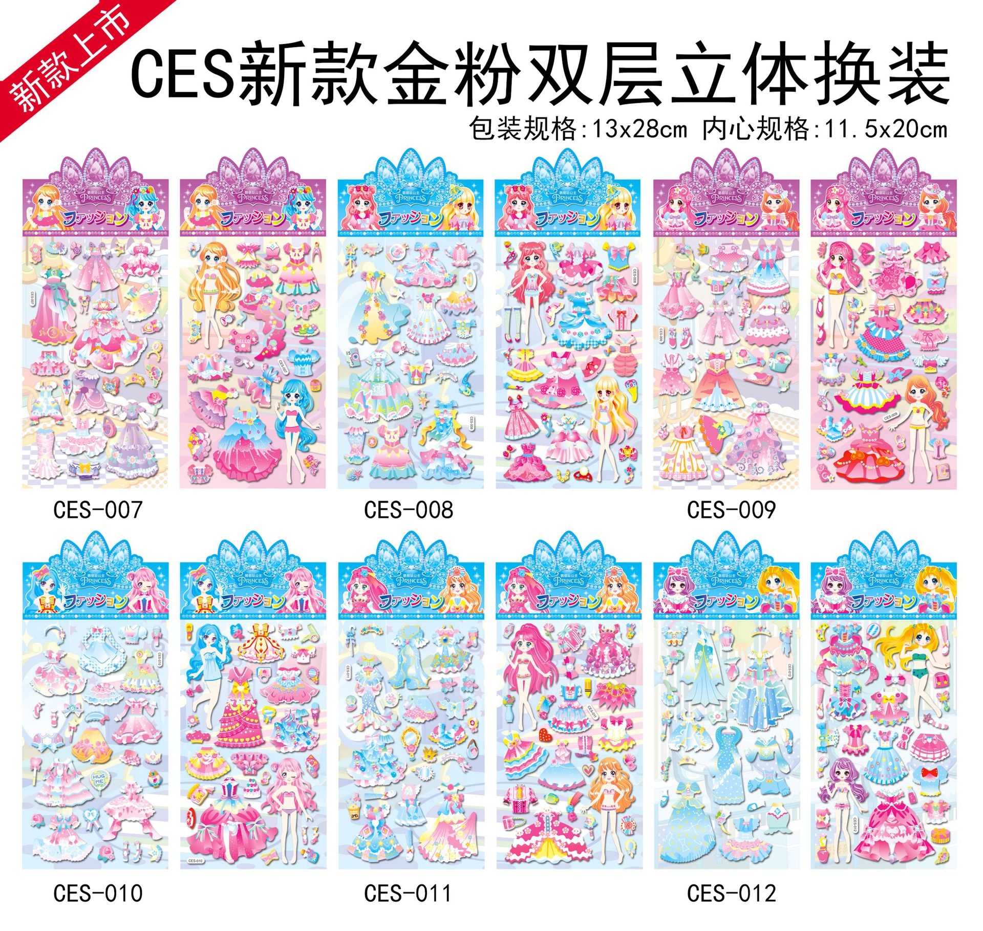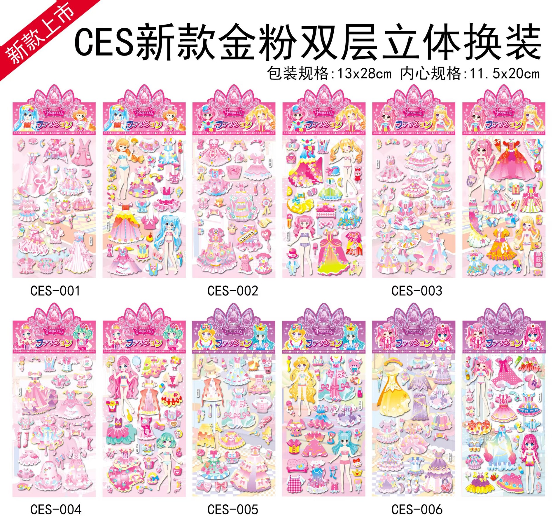 二重金粉早教児童泡貼り絵着せ替え貼り立体貼り漫画シール貼り絵卸売り