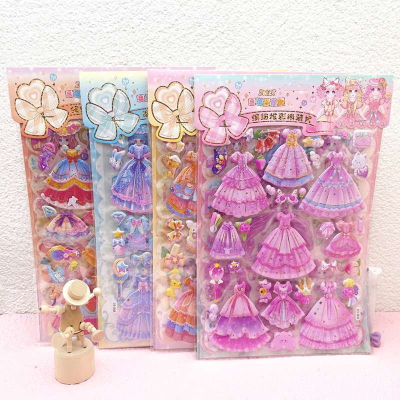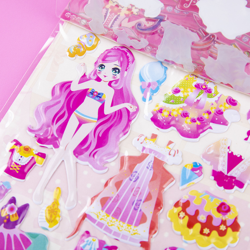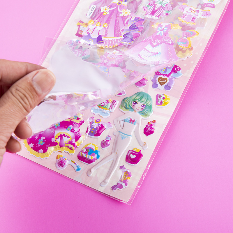 女の子の子供が勝手に貼り付けて、殻を脱いでいない凹凸pvc立体貼り付け立体3d工芸貼り付けシール泡貼り