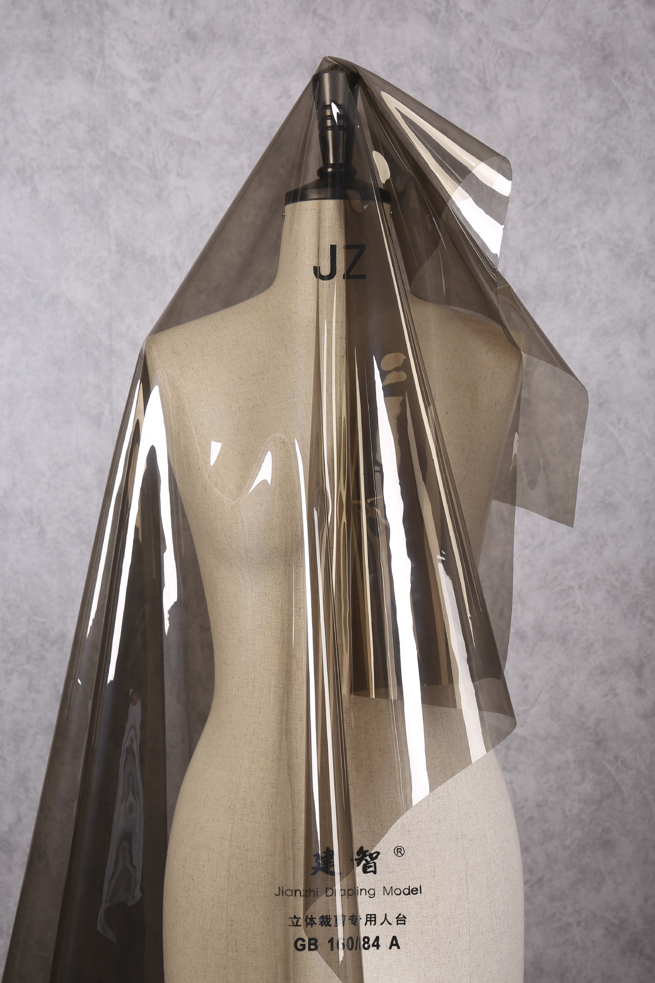 ブラックグレーtpu半透明フォグフロスト生地レインコートエプロン防水プラスチック布エコ服生地