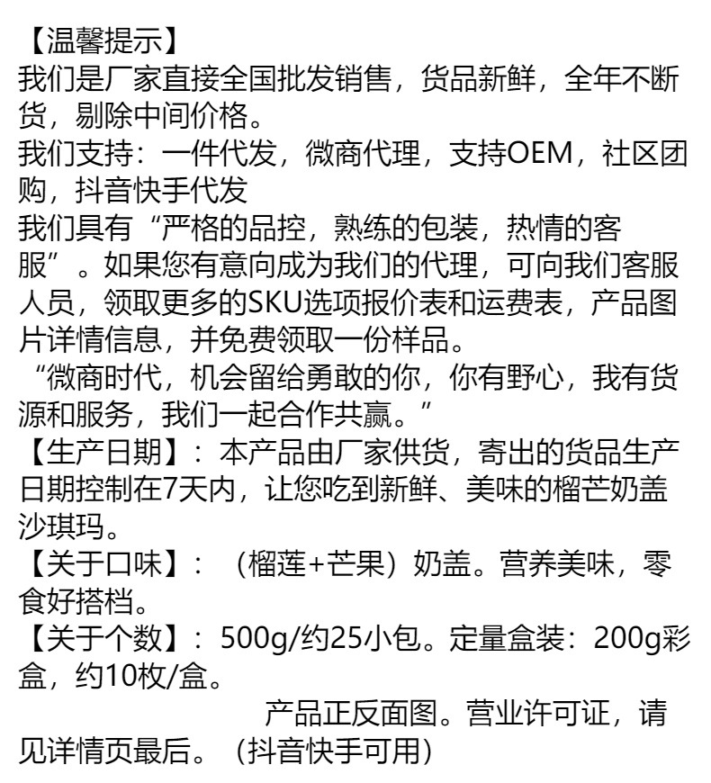 ドリアンミルクカバー シャキーマ 500g/40個 ドリアン+マンゴー ダブルスナック ペストリー ドロップシッピング