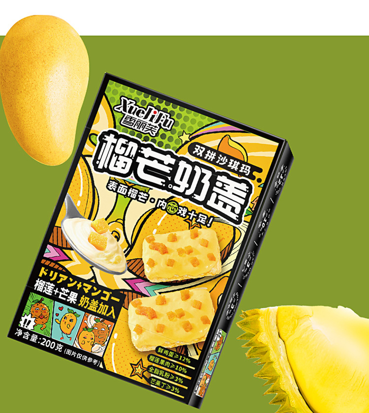 榴芒ミルクキャップ沙琪瑪 ドリアンとマンゴーのダブルミックス カジュアルスナック おやつ レジャー食品 箱詰めスナック
