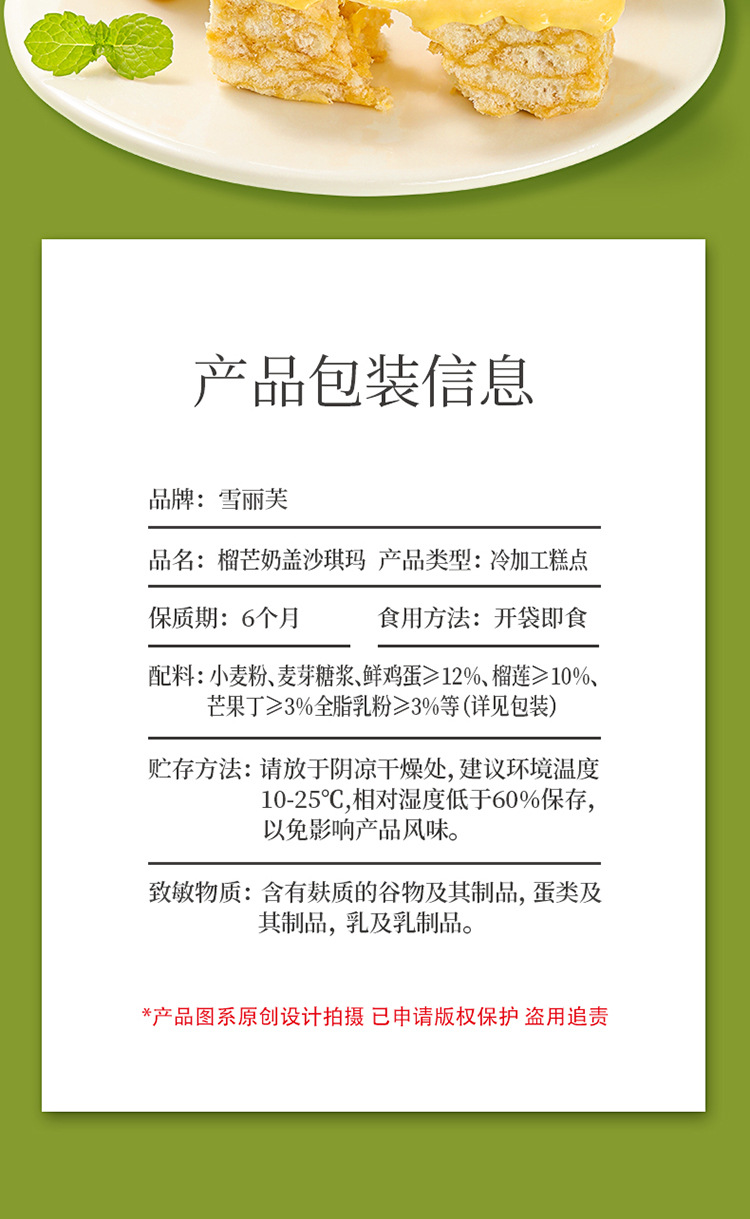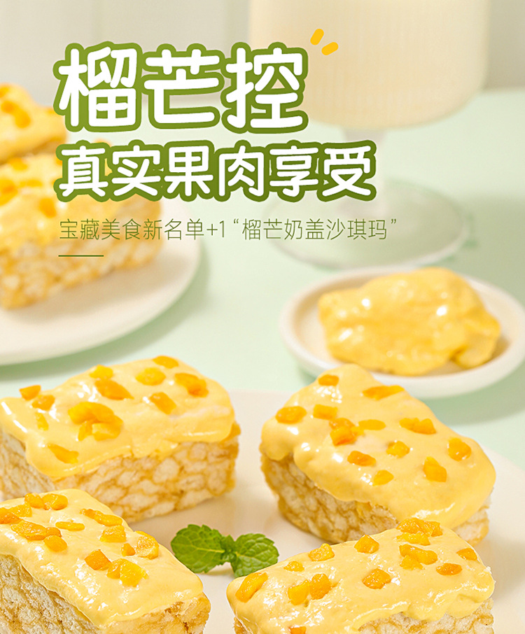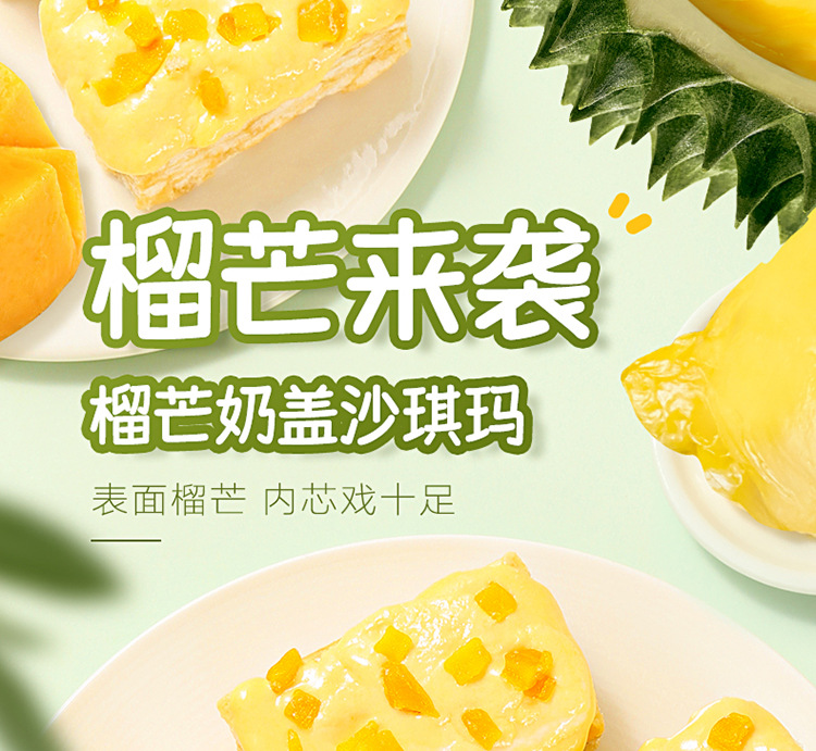 榴芒双拼奶盖沙琪玛榴莲芒果网红爆款休闲零食糕点心