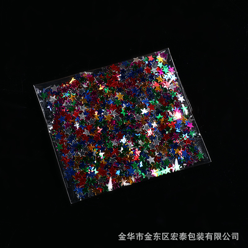 1克袋装五角星闪片七彩色3-4mm星星珠片星空混彩DIY饰品配件亮片