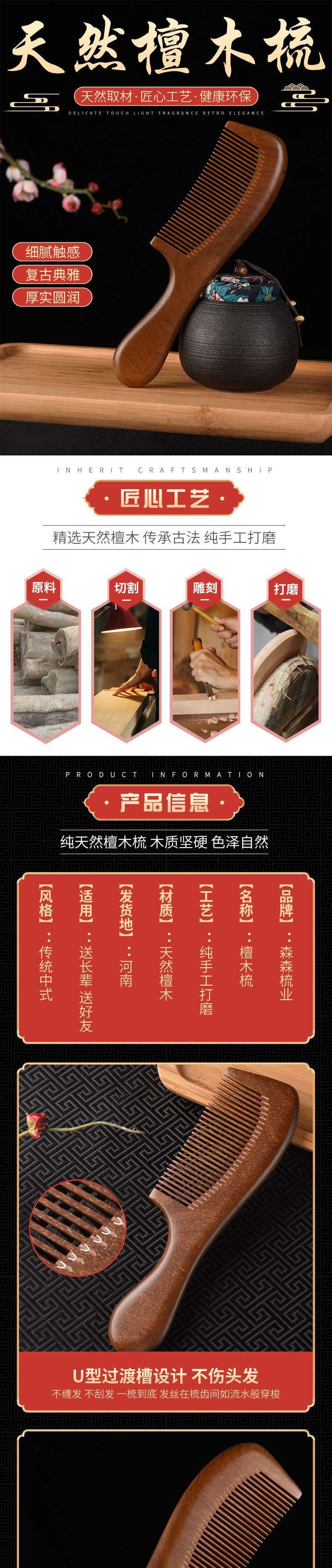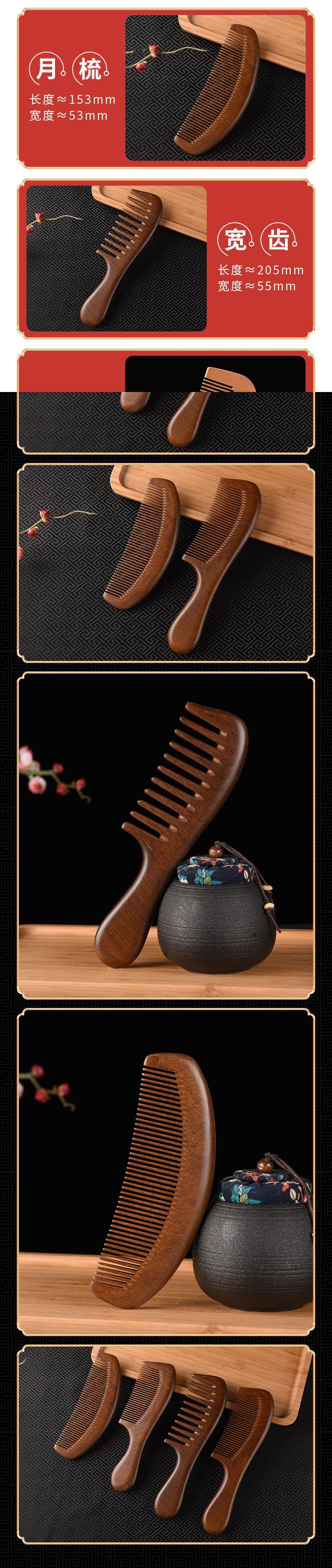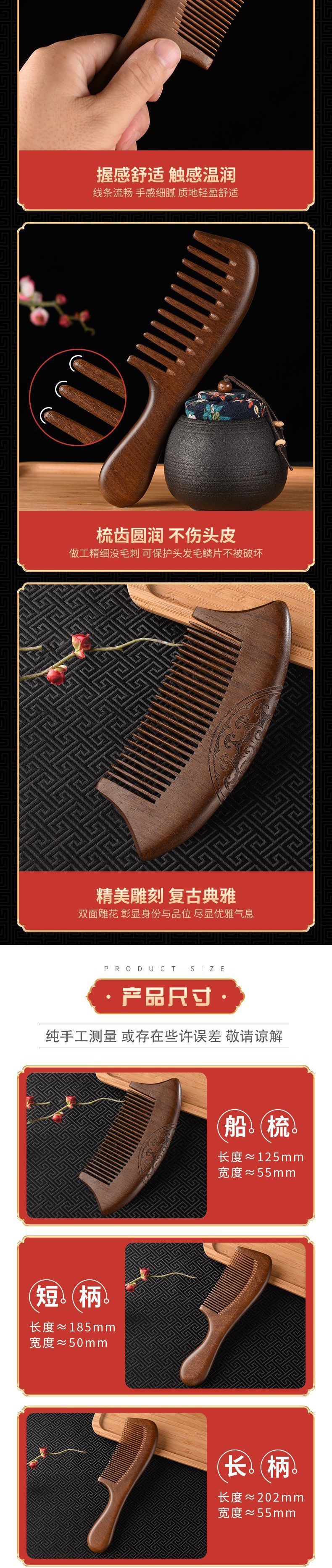 長型紅檀木櫛マッサージ櫛彫刻延長ハンドル家庭用木櫛露店量檀木櫛木櫛