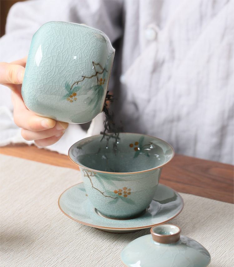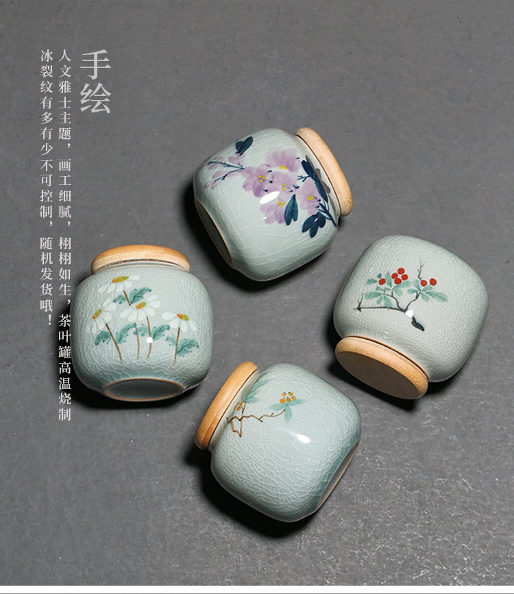 哥窑青瓷冰裂茶叶罐 家用储物 药材 茶叶分类罐 可印logo批发瓷罐