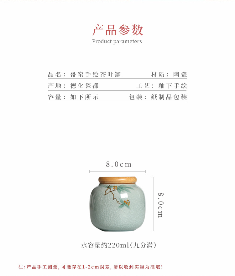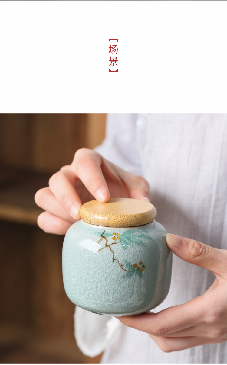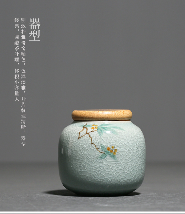 裂釉手描き枇杷茶缶 密封缶 クリエイティブセラミック携帯用小型防湿家庭用茶器