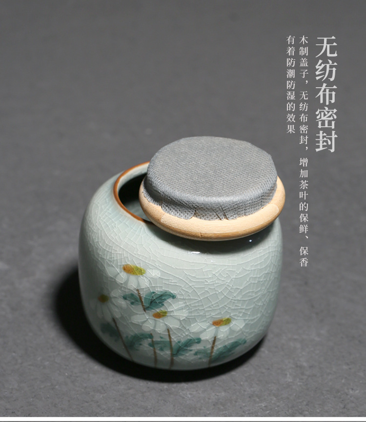 草木灰手描き菊茶葉缶密封缶陶磁器保存茶缶中国式レトロ防湿家庭用トランペット