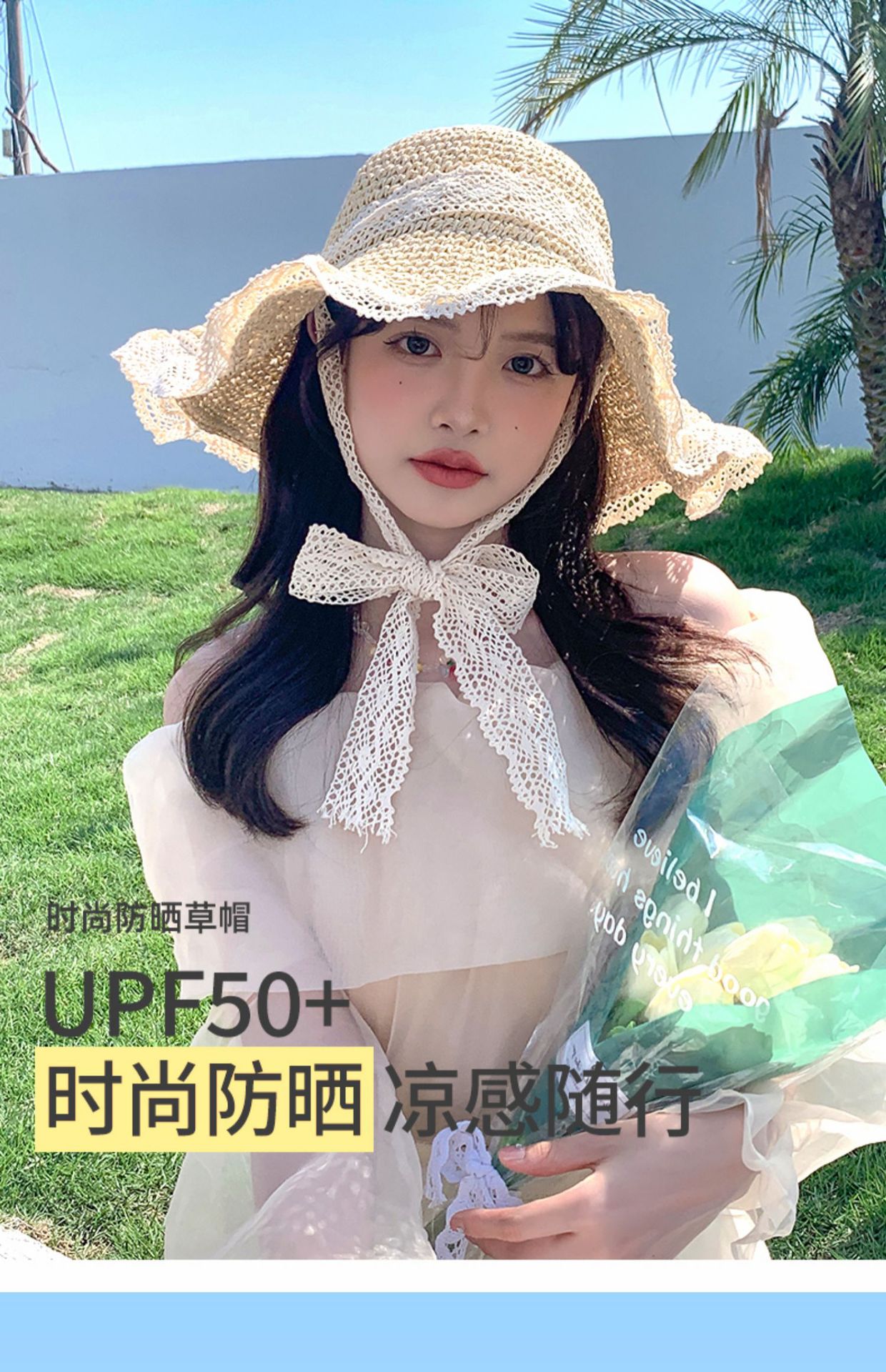 麦わら帽子ins韓国版は透かし彫りの麦わら帽子を持っています。