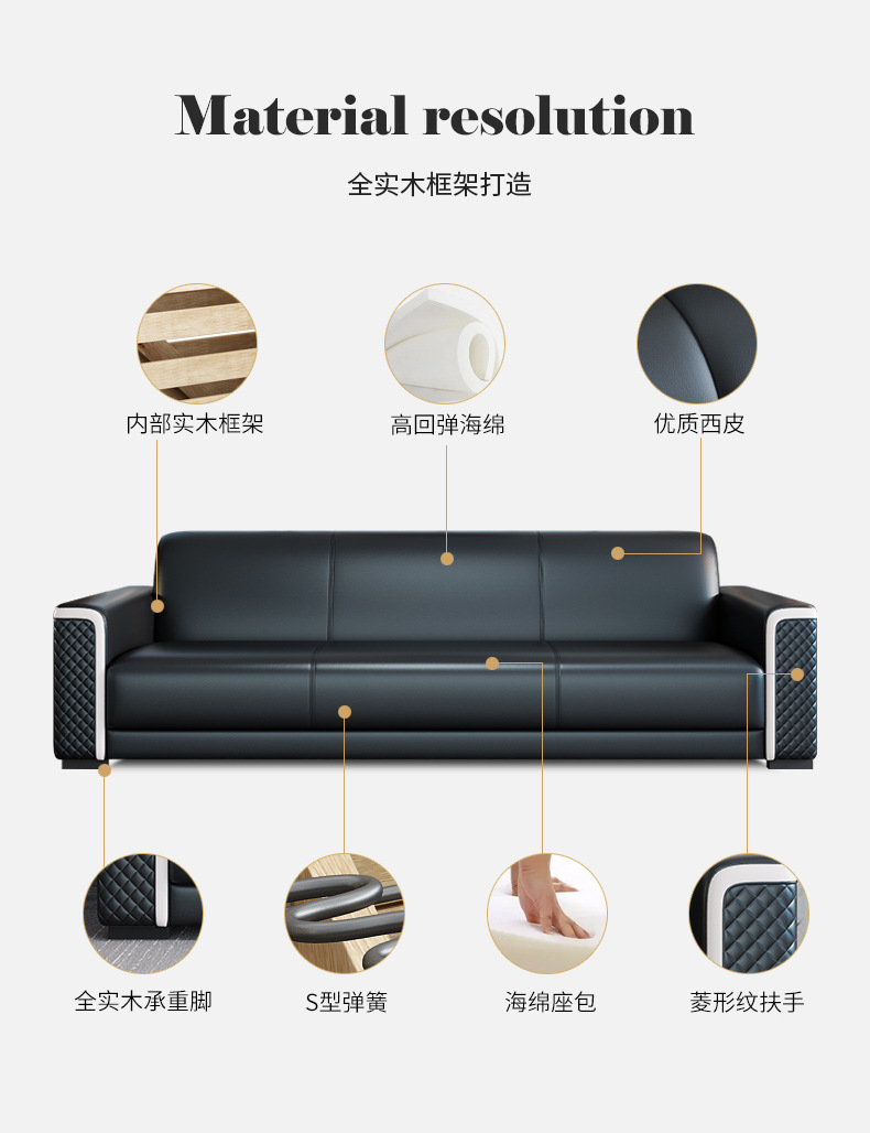 オフィスソファーシンプルモダンビジネスレジャー応接室応接区三人位オフィスソファーティーセット