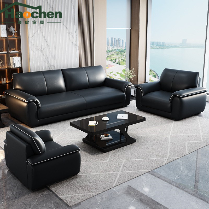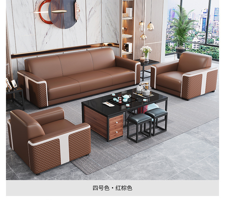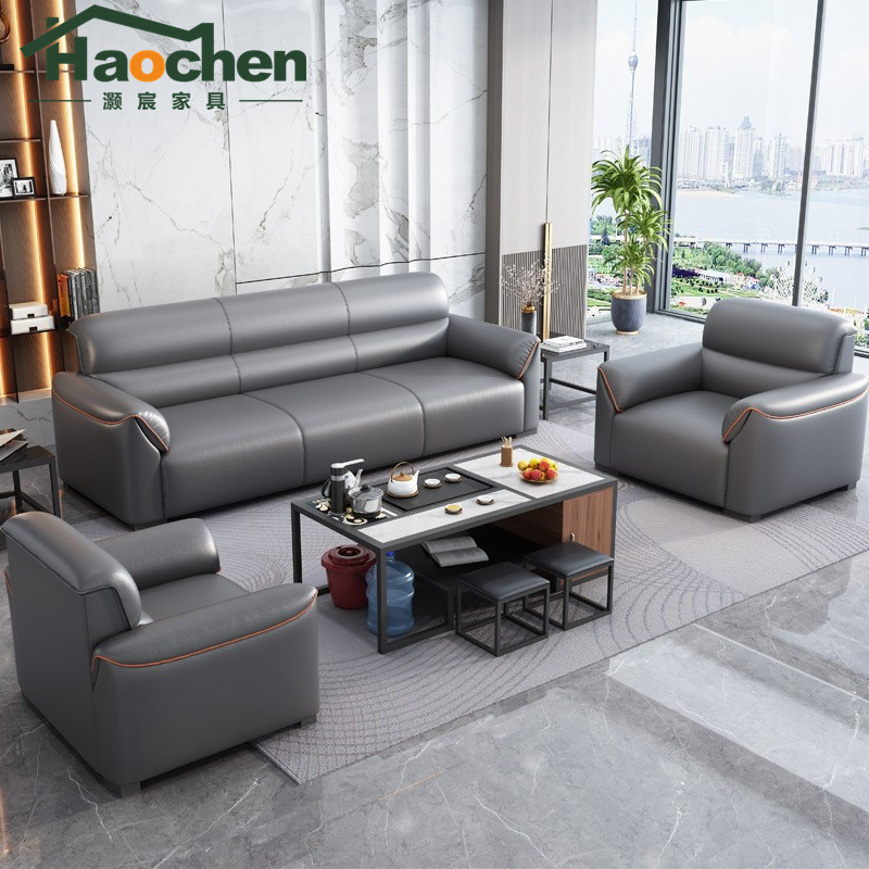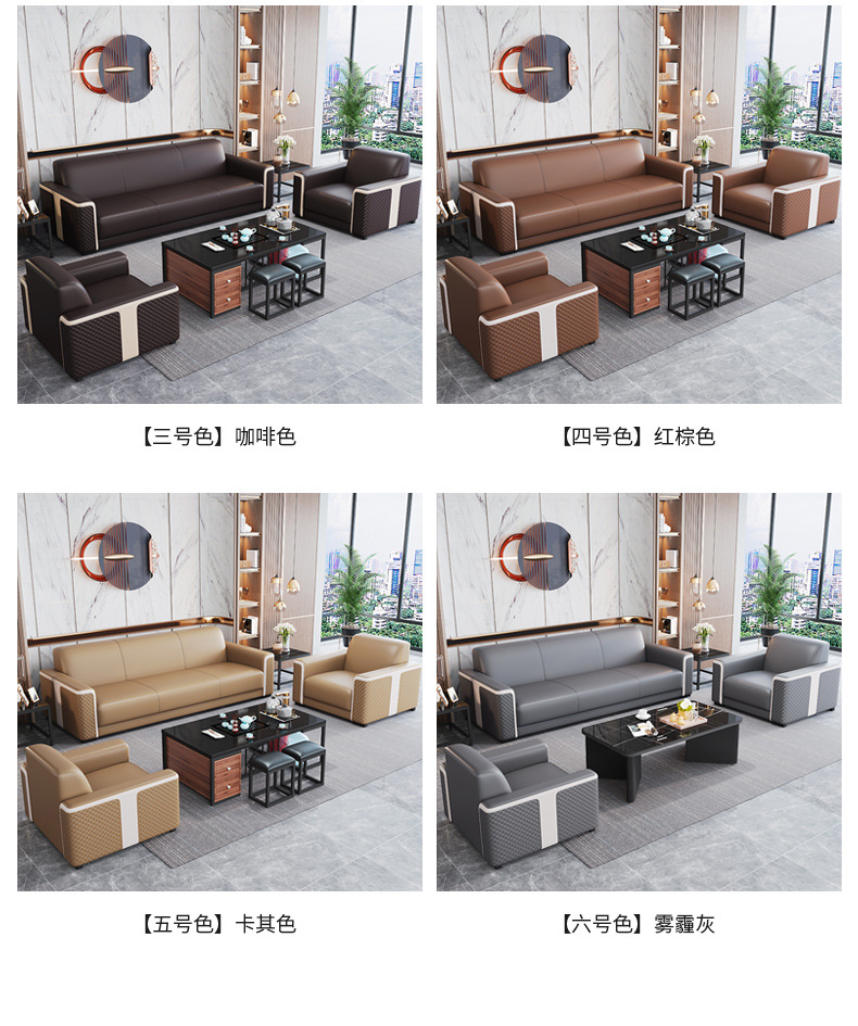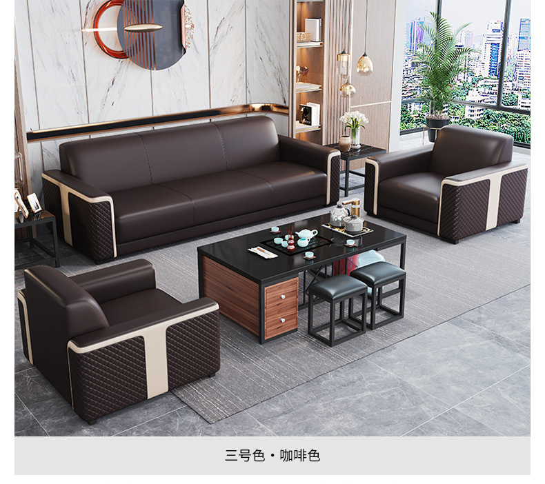 新しい本革オフィスソファー現代シンプル三人位オフィスビジネス接待接客茶数組み合わせソファー
