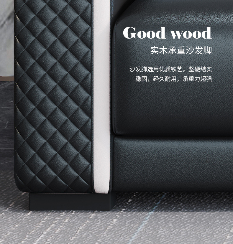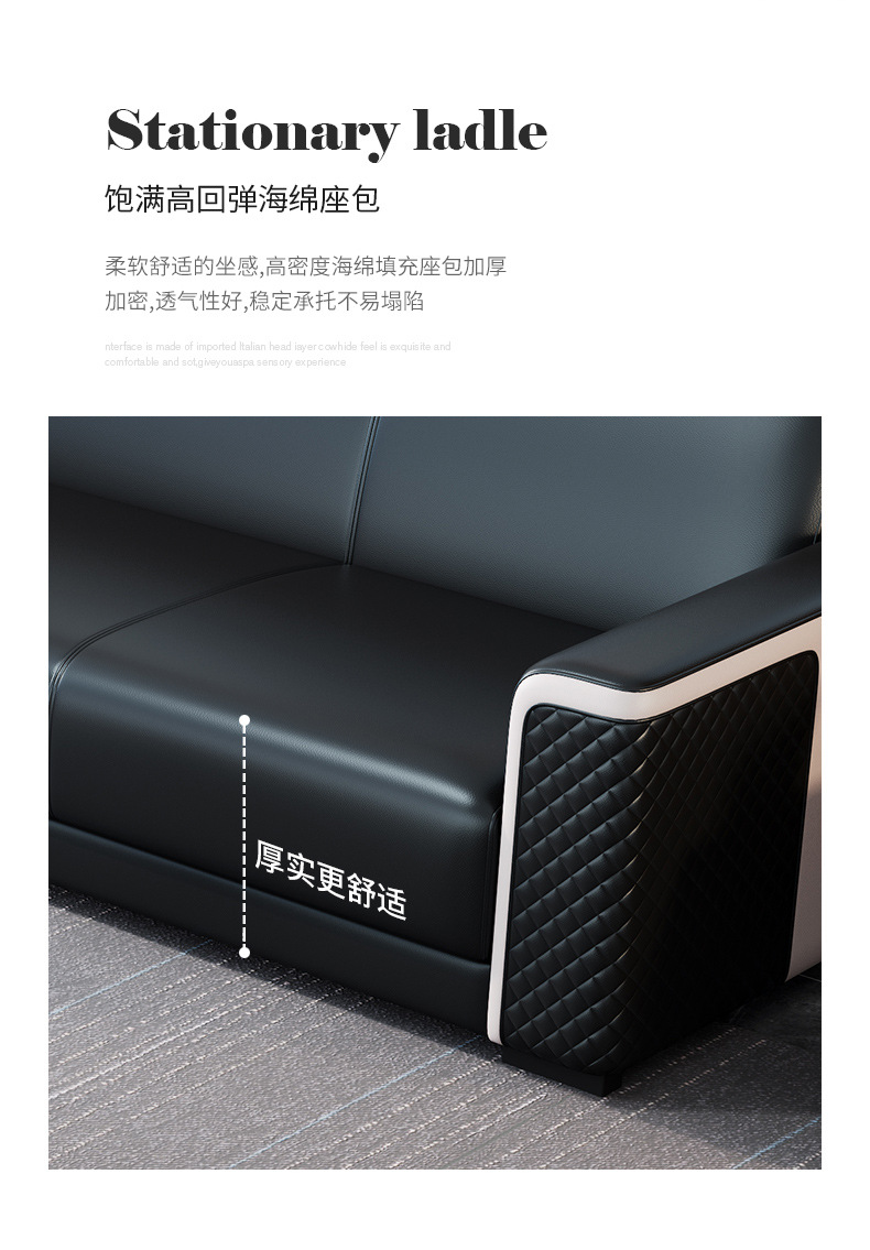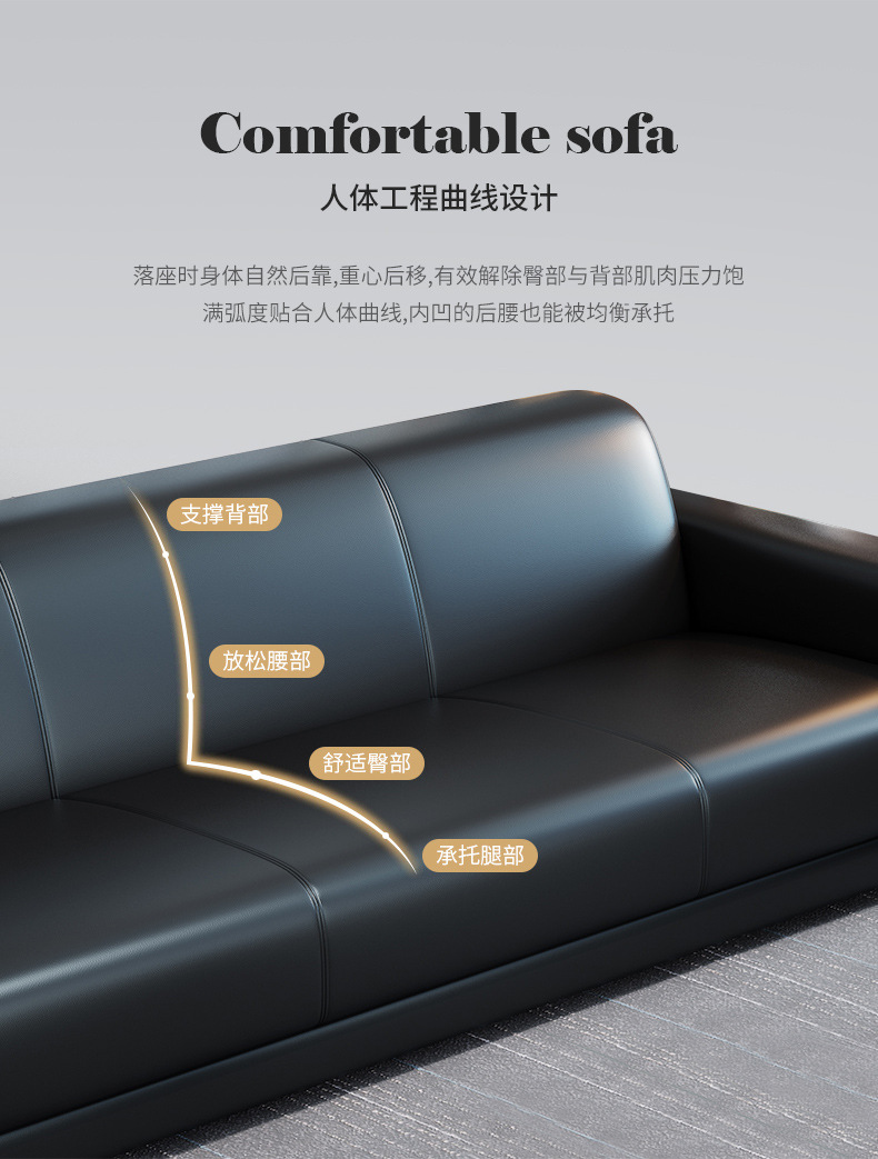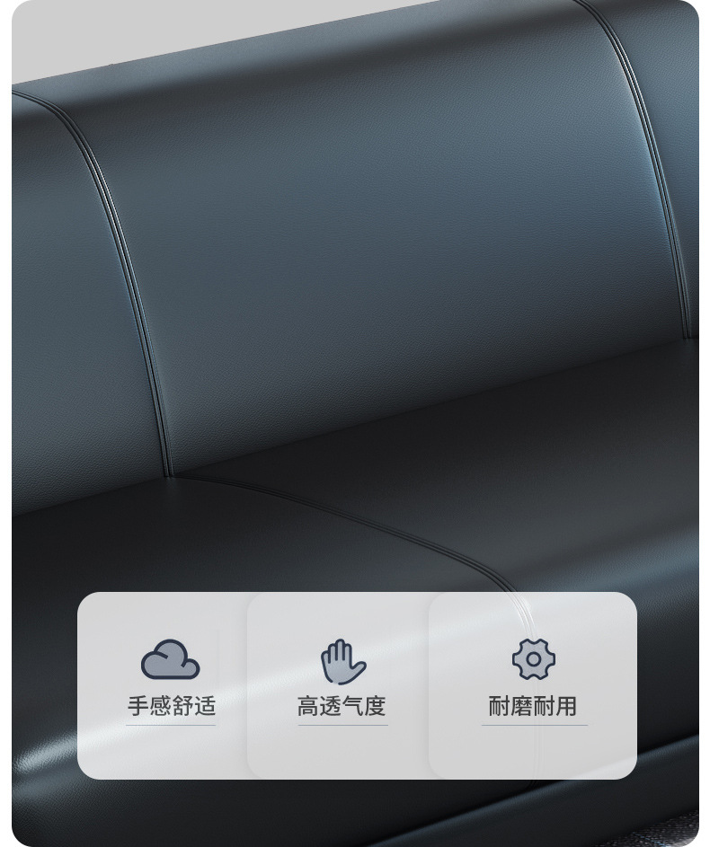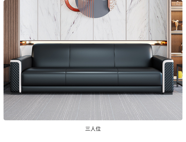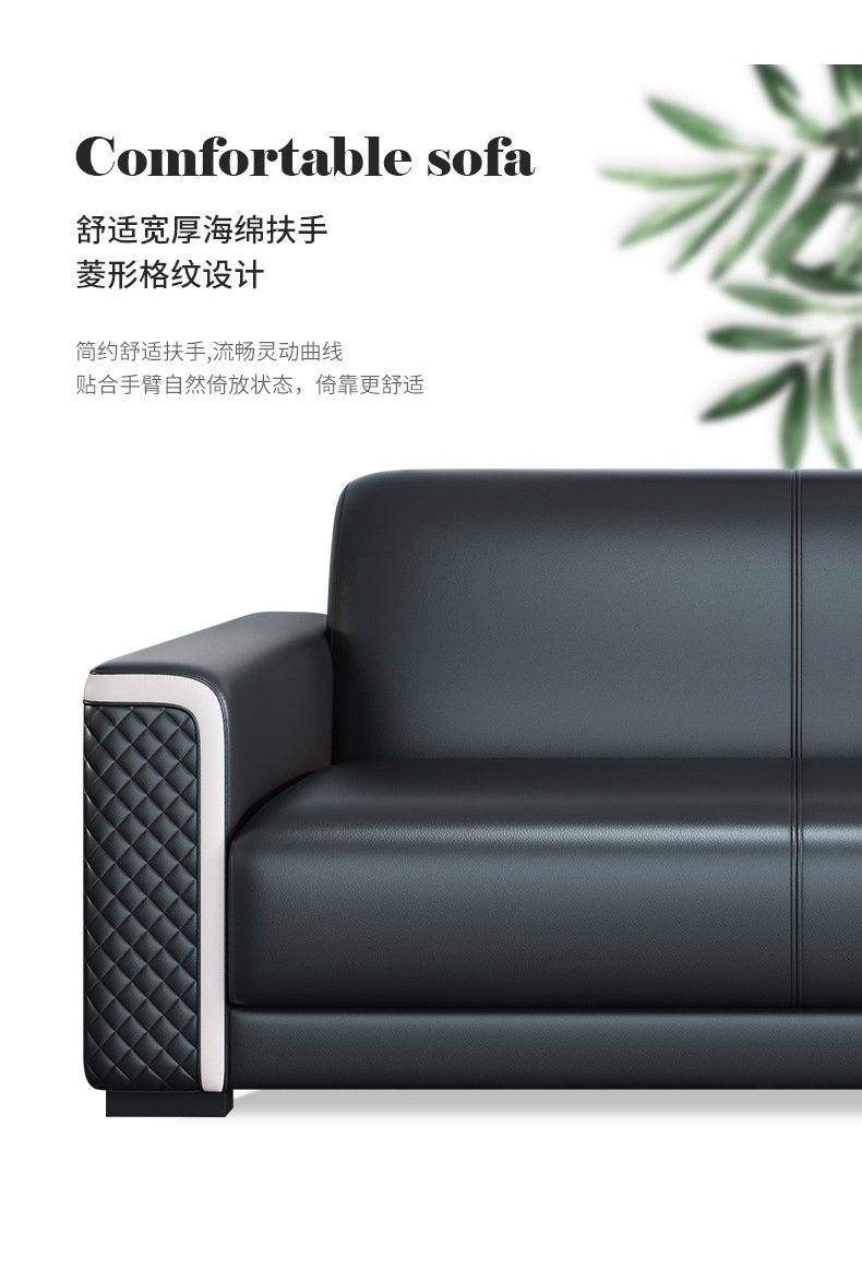 オフィスソファとコーヒーテーブルの組み合わせ、レザー製受付・商談用、シンプルなレザーオフィス3人掛けソファ