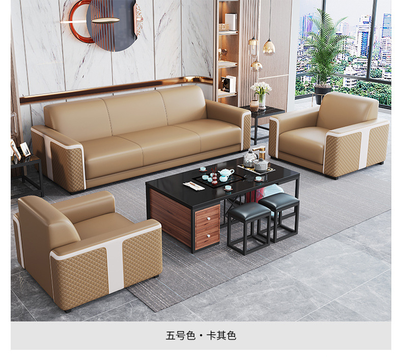 オフィスソファー現代シンプル猫爪皮会客接待単三人位オフィスファッション新型茶卓セット