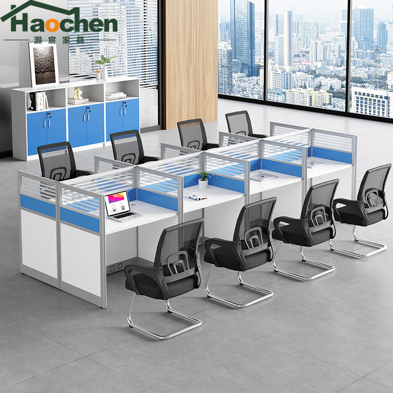 従業員のデスクは簡単で、現代の従業員のテーブルと椅子の組み合わせは4人で6人です。