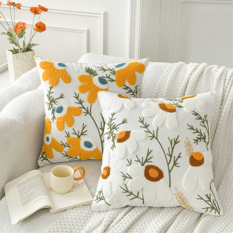 タオル刺繍の花柄枕カバー、モダンでシンプルなソファ、ベッドサイドテーブル、芯なしオフィス用クッション、カスタムメイド