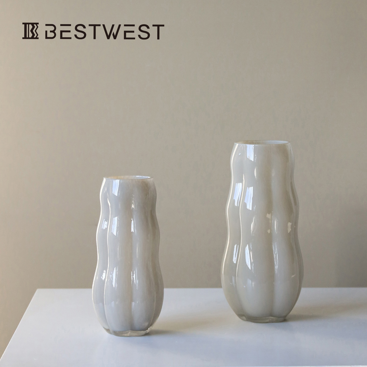Best westミルキー不规则ガラス花瓶置物モダンシンプルinsホームリビングルーム花器
