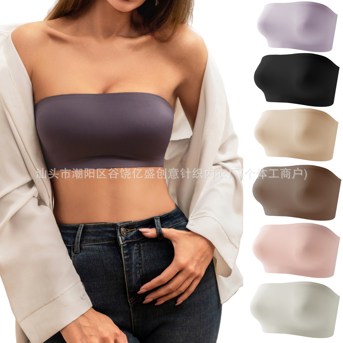 ストラップレスブラ、夏用チューブトップ、滑り止めデザイン、シームレスアイスシルク、ヨーロッパとアメリカの小さな胸用プッシュアップブラ