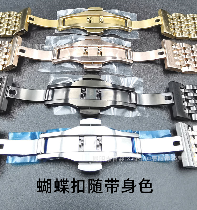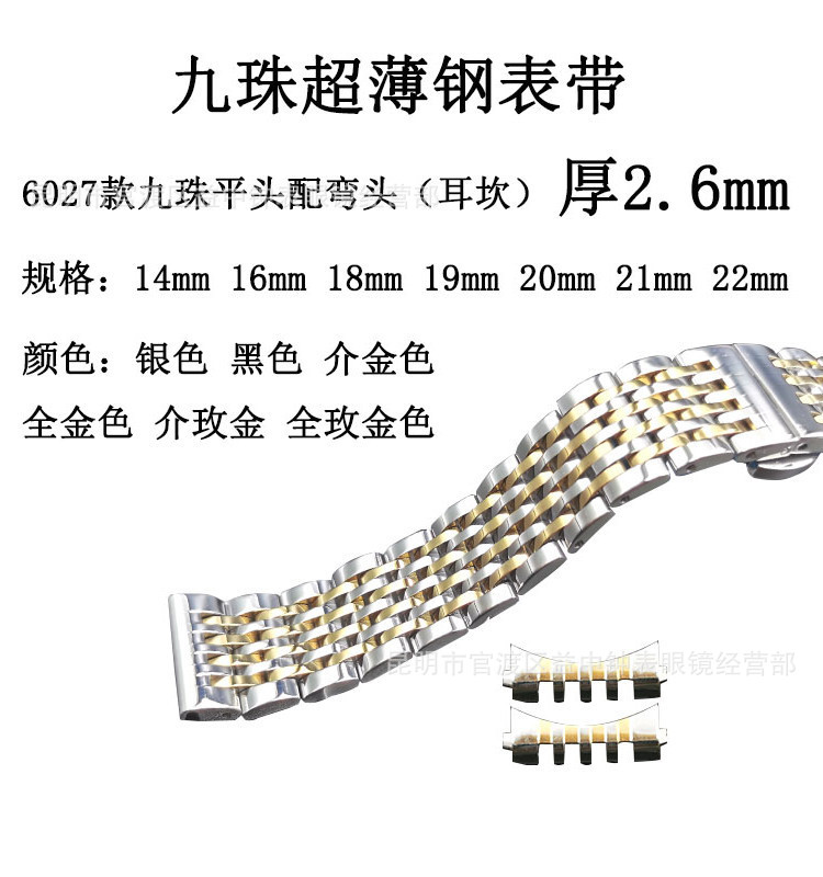 九珠バンド薄形鋼バンド薄型時計チェーン20mm 22m中実蝶ボタンステンレス腕時計バンド