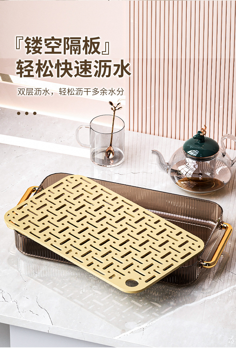 北欧轻奢沥水托盘家用洋气沥水盘塑料双层放茶杯茶具水杯水果茶盘