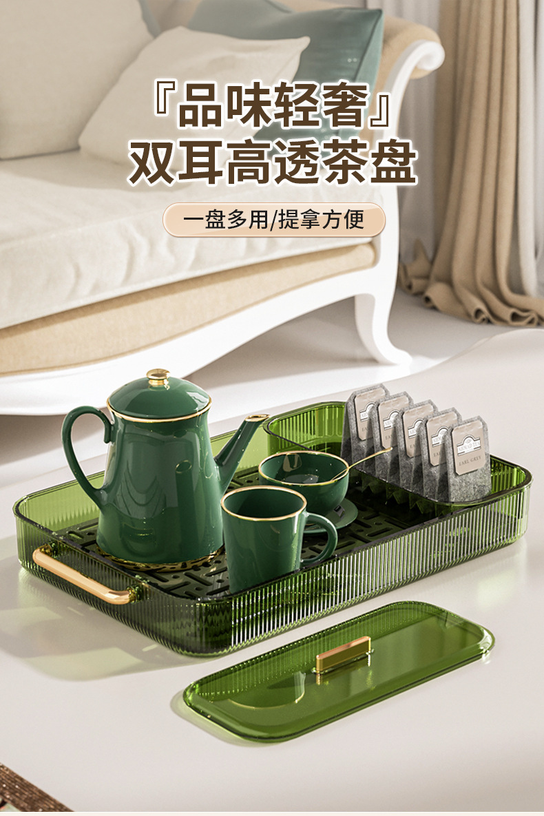 茶盤家庭用客間乾泡台軽豪華茶器カップ棚に湯飲みコップを置く長方形二重の水たまりトレイ