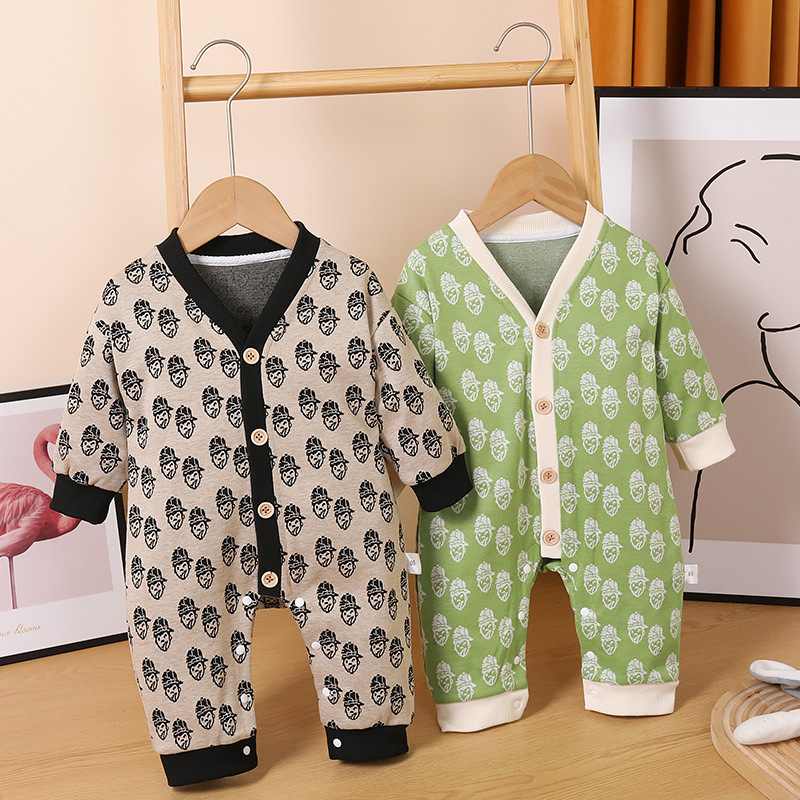 赤ちゃんの保温連体服春と秋の冬にベルベットの服を着ている男女の子供の暖かい服を着ている赤ちゃんの室内で服を着ている