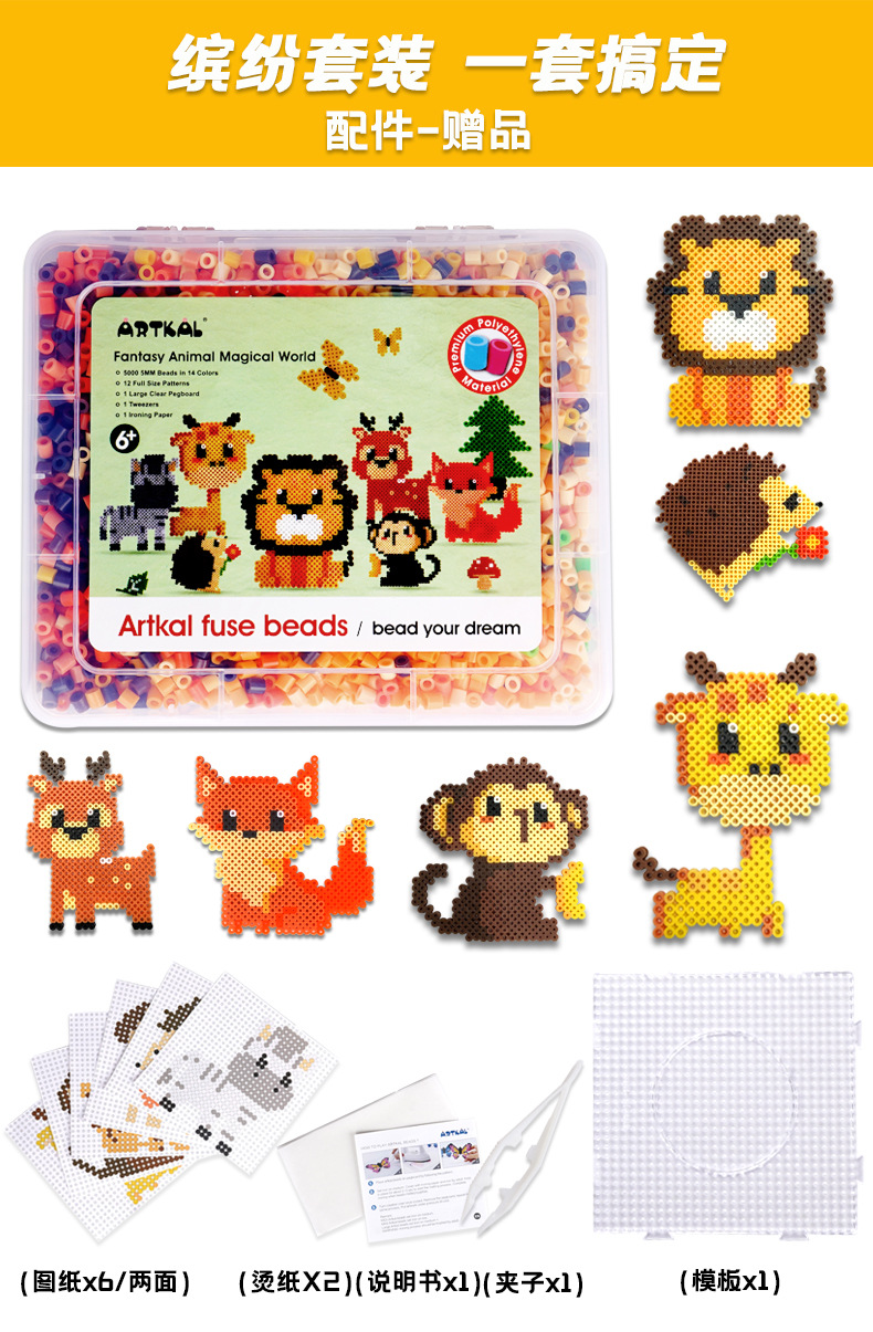 Artkal工場直供豆セット豆動物パズル積み木創意手作りdiy5mm新品