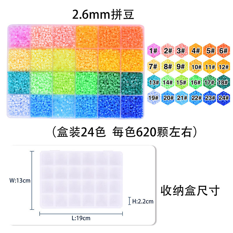 新款2.6mm拼豆融合豆手工diy小豆 补充装24色套盒像素拼豆豆色盘