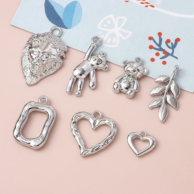个性简约光面线条爱心音符多款式合金挂件DIY项链耳饰材料配件白K