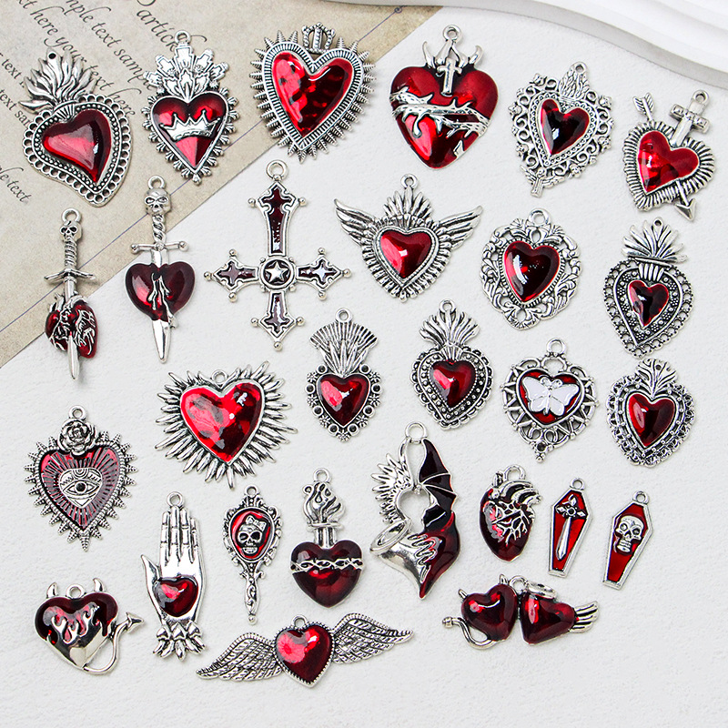 Diy合金アクセサリーアクセサリーバロック愛ハート形桃心スパイラル花柄リングイヤリングイヤリングペンダント材料