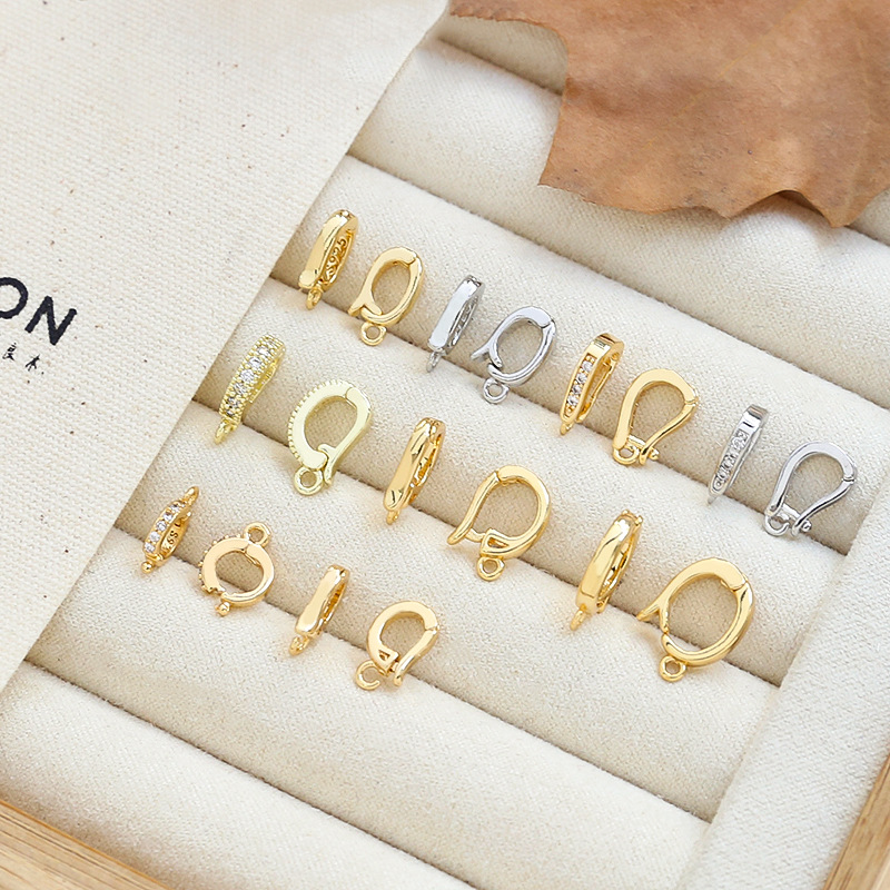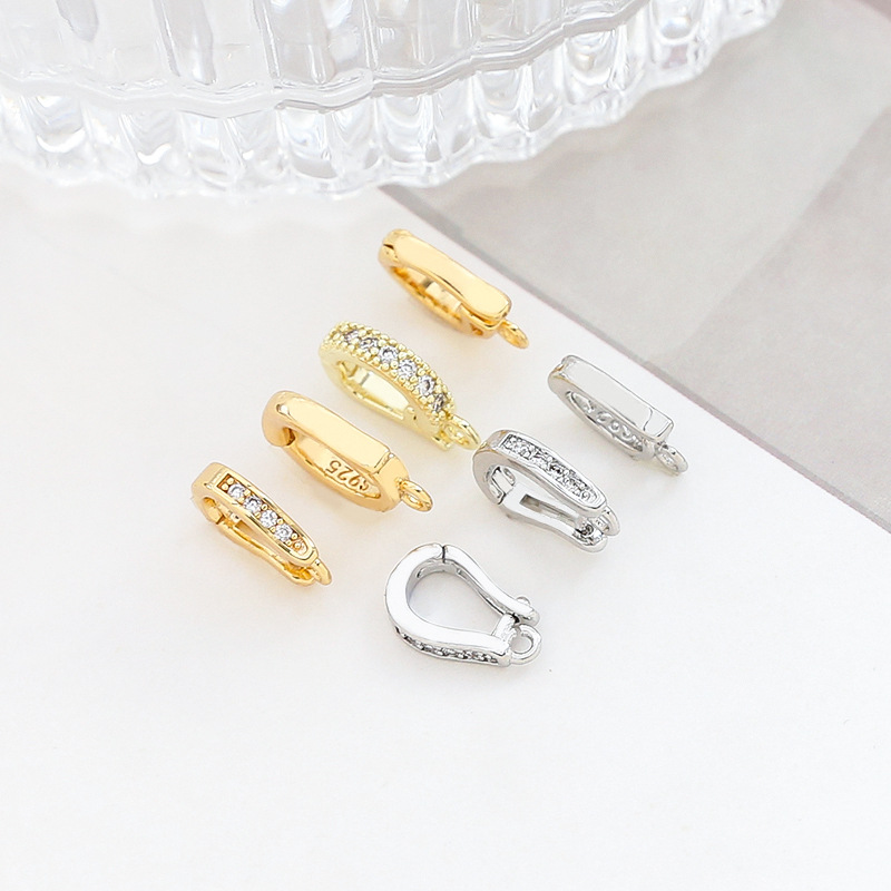 DIY饰品配件镀金万能扣镶锆石项链吊坠扣子吊坠扣头材料饰品配件