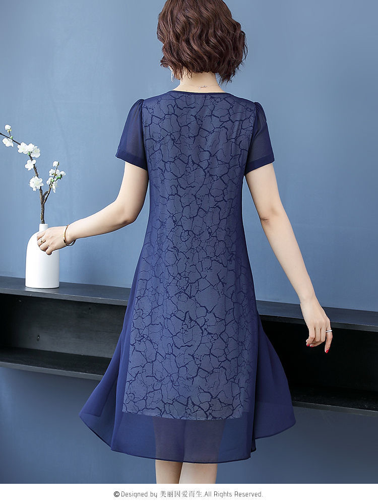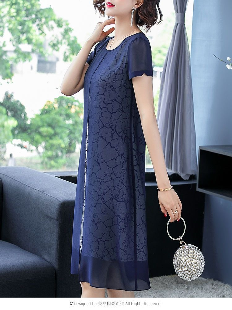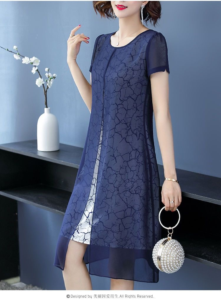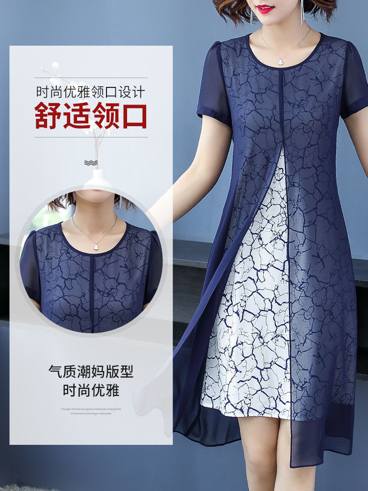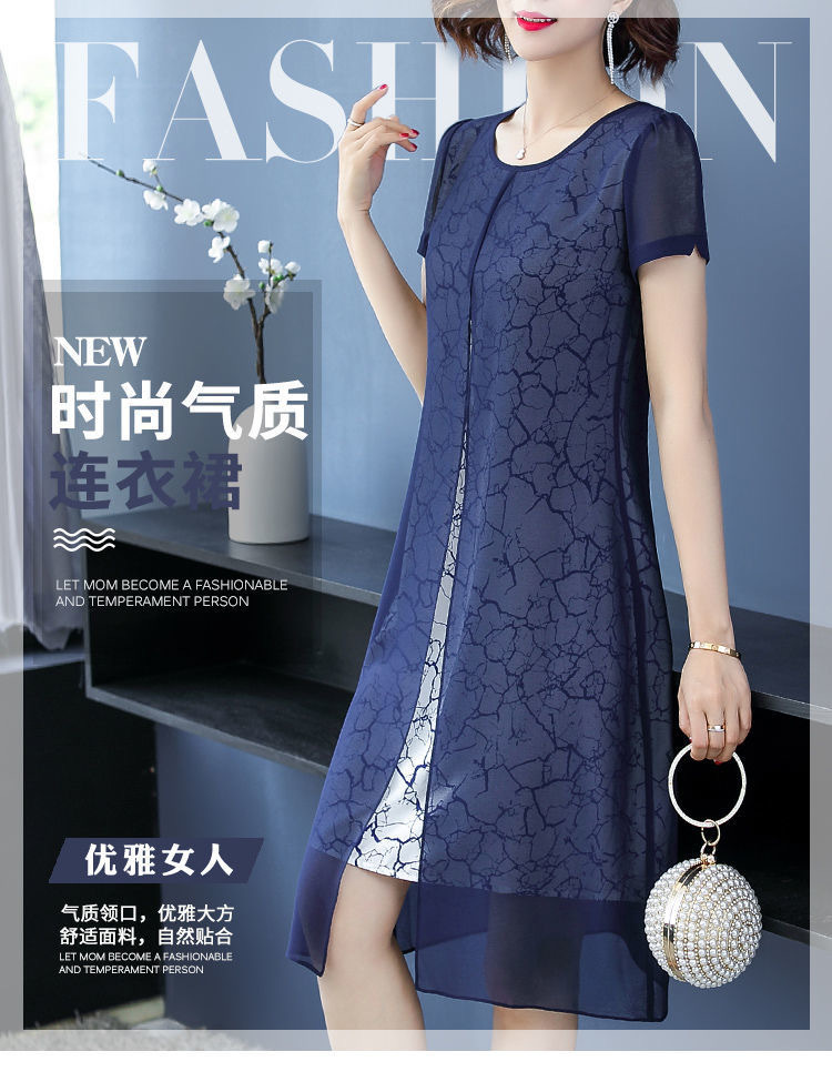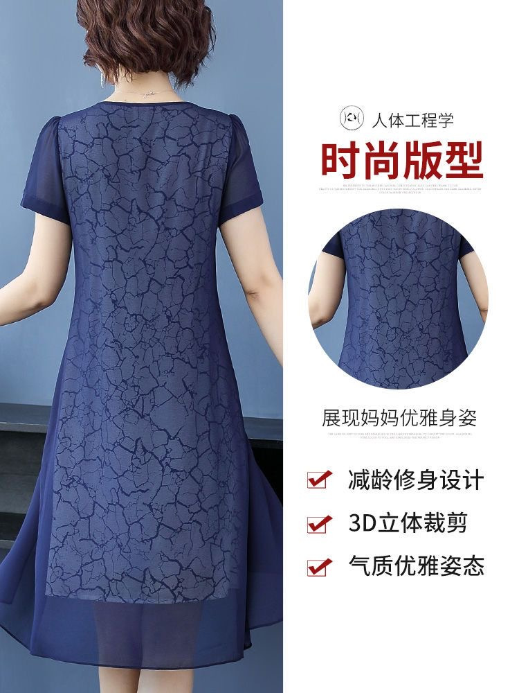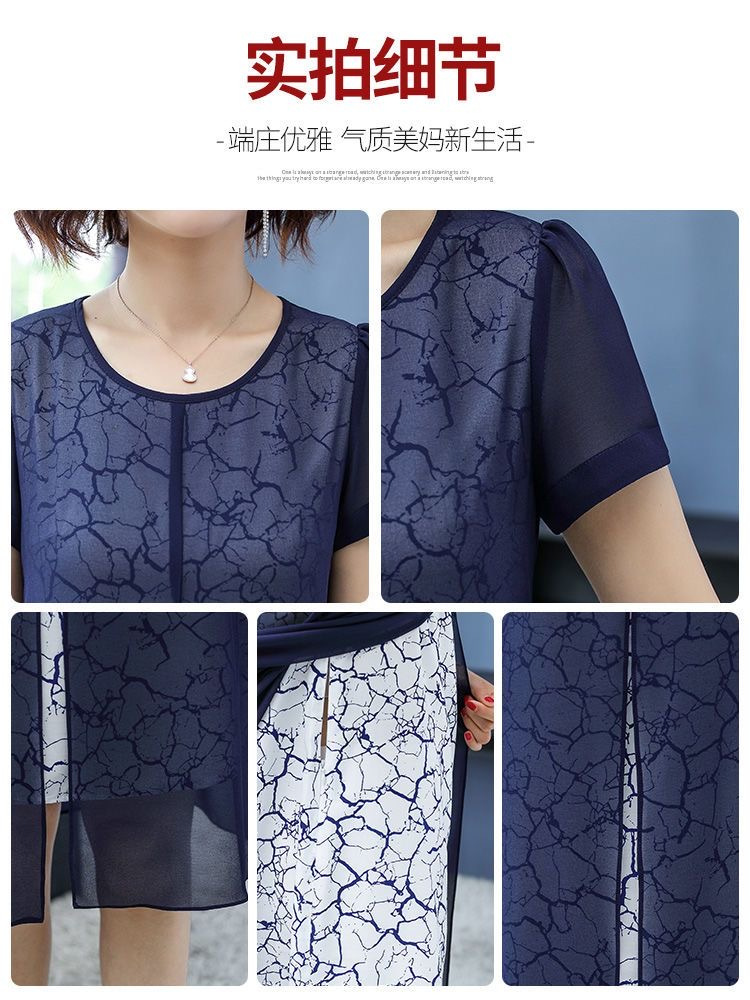 女性のための半袖ドレス 2025 夏の新スタイルワイド女性のファッショナブルで高貴な母親の摩耗春と秋の気質偽ツーピースセット