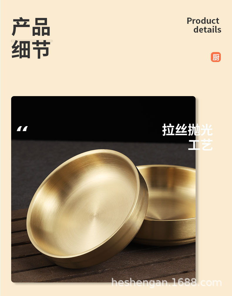 金色の凉菜皿調味料皿猫ボウルスープボウル二重屋外ご飯ボウル304ステンレス韓国式キムチ皿