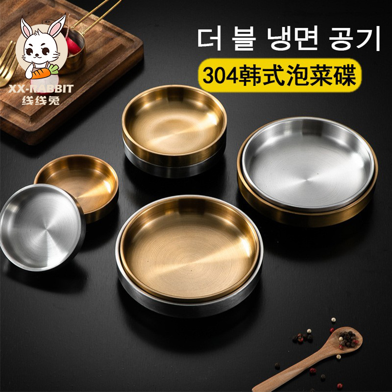 韓国式キムチ調味料304ステンレス調味料銀金色平底菜凉菜焼肉店食器