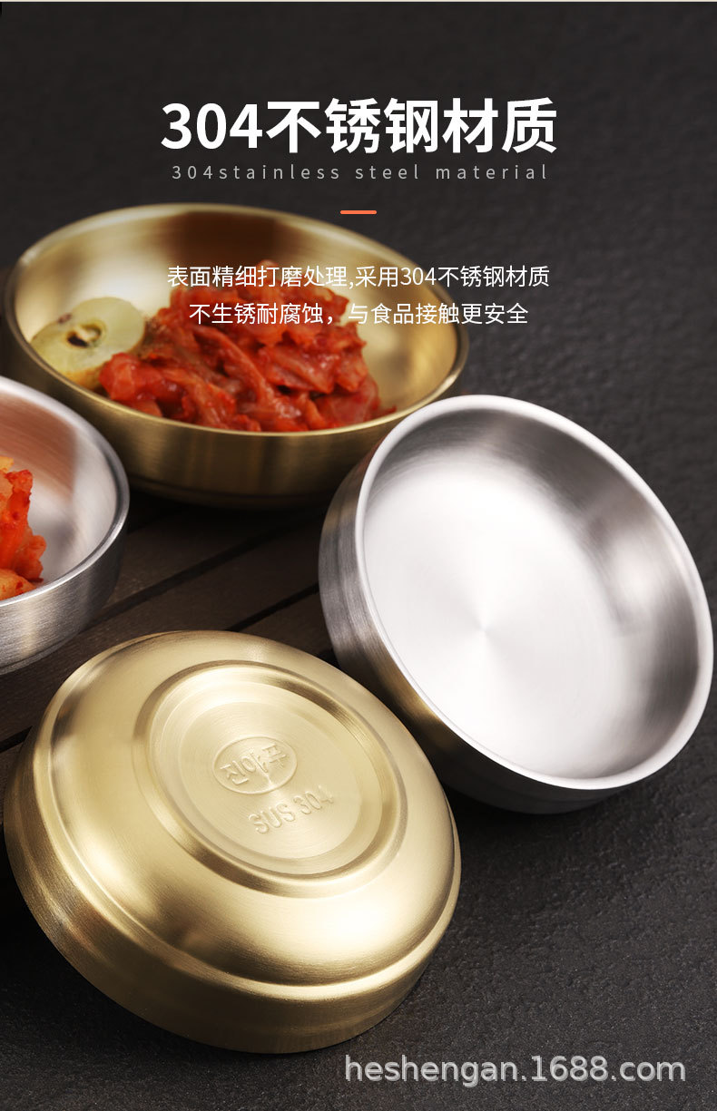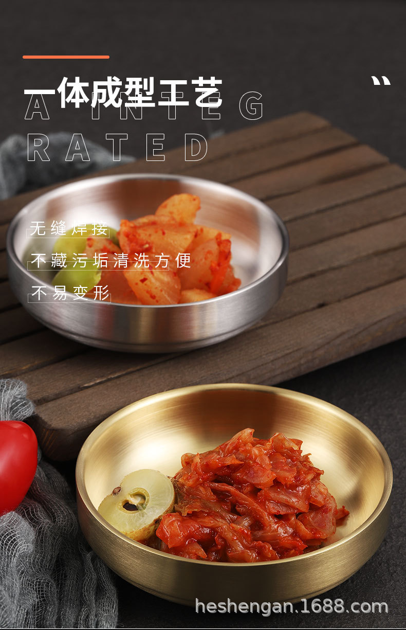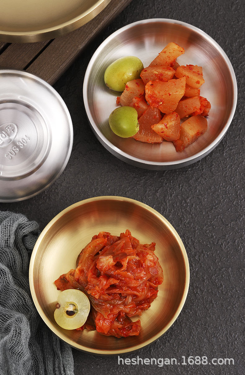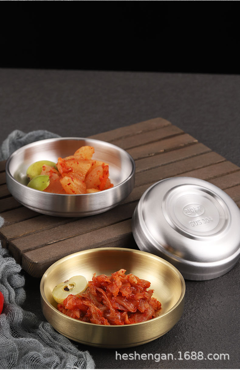 304ステンレスの韓国式の皿の金色の二重のつけ物の皿のキムチの碗の軽食の皿の韓国料理の碗