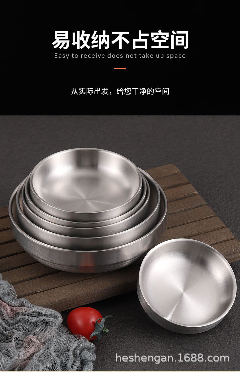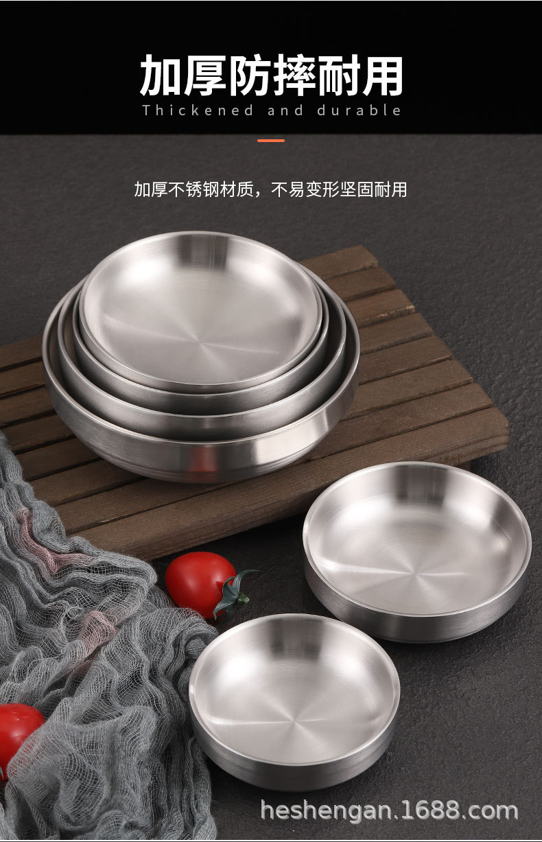 304ステンレスの韓国式二重キムチ皿料理店は皿のおかず皿の冷たい料理皿の商用調味料皿を厚くします。