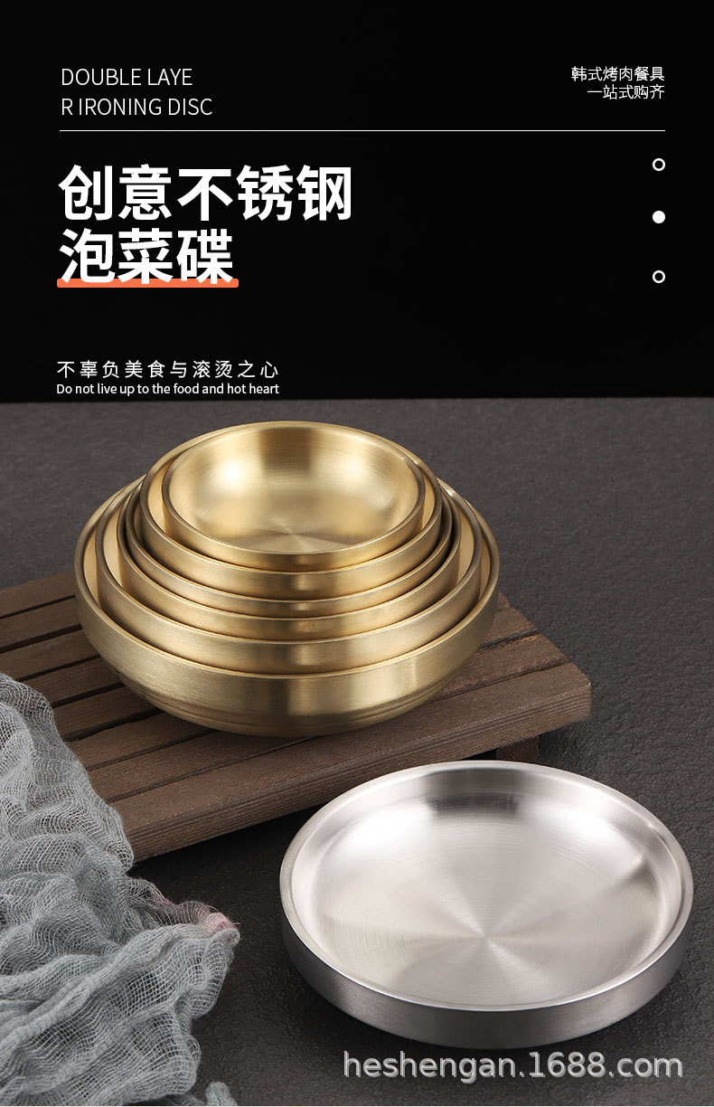 韓国式食器304ステンレス円盤カスタム金色トレイ果物ケーキ骨皿焼肉皿