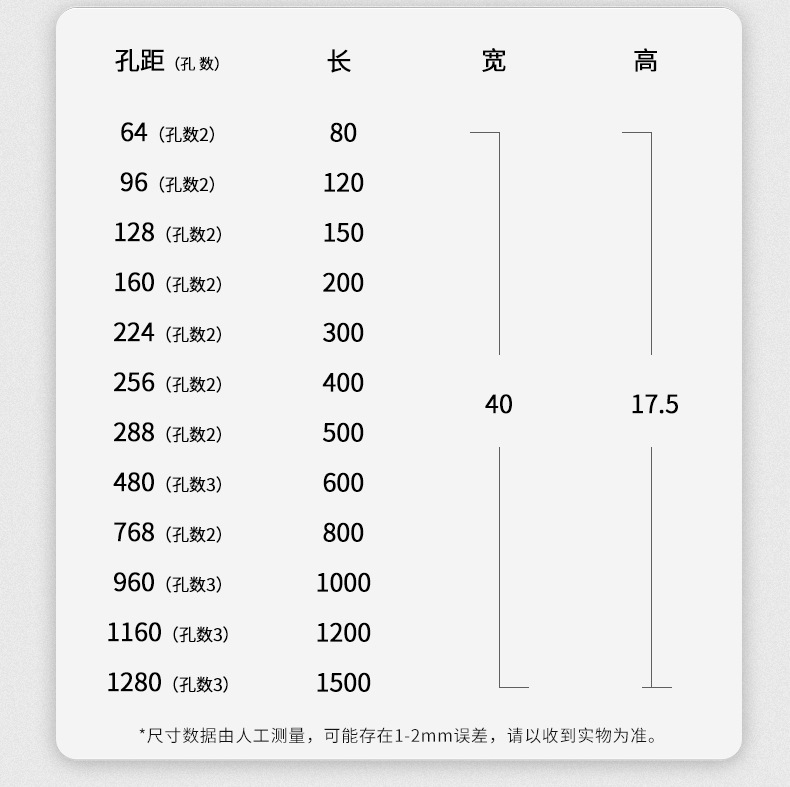白6805-64穴距離全長80,白6805-96穴距離全長120,白6805-128穴距離全長150,白6805-160穴距離全長200,白6805-192穴距離全長250,白6805-224穴距離全長300,白6805-256穴距離全長400,白6805-288穴距離全長500,白6805-480穴距離全長600,白6805-768穴距離全長800,白6805-960穴距離全長1000,白6805-1160穴距離全長1200,白6814B-64全長80,白6814B-96全長120,白6814B-128全長150,白6814B-160全長200,白6814B-224全長300,白6814B-256全長400,白6814B-288全長500,白6814B-480全長600,白6814B-768全長800,白6814B-960全長1000,白6814B-1160全長1200