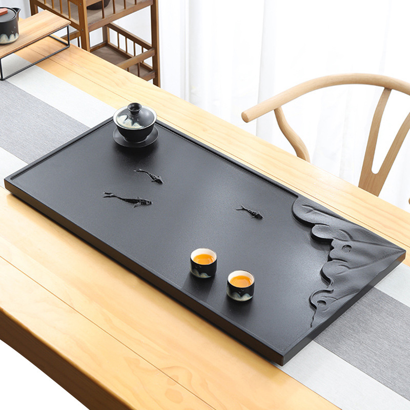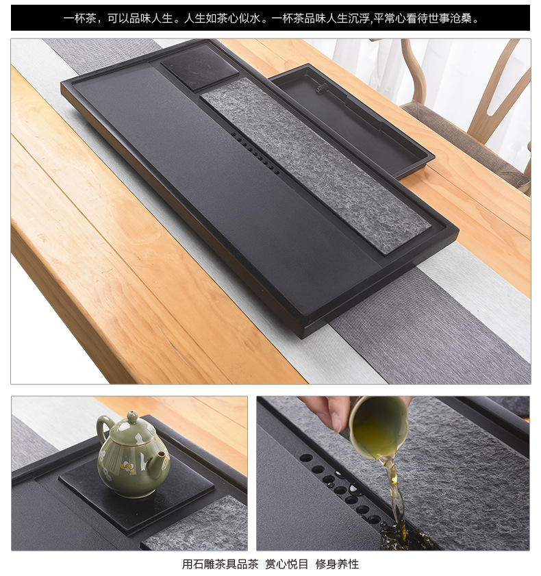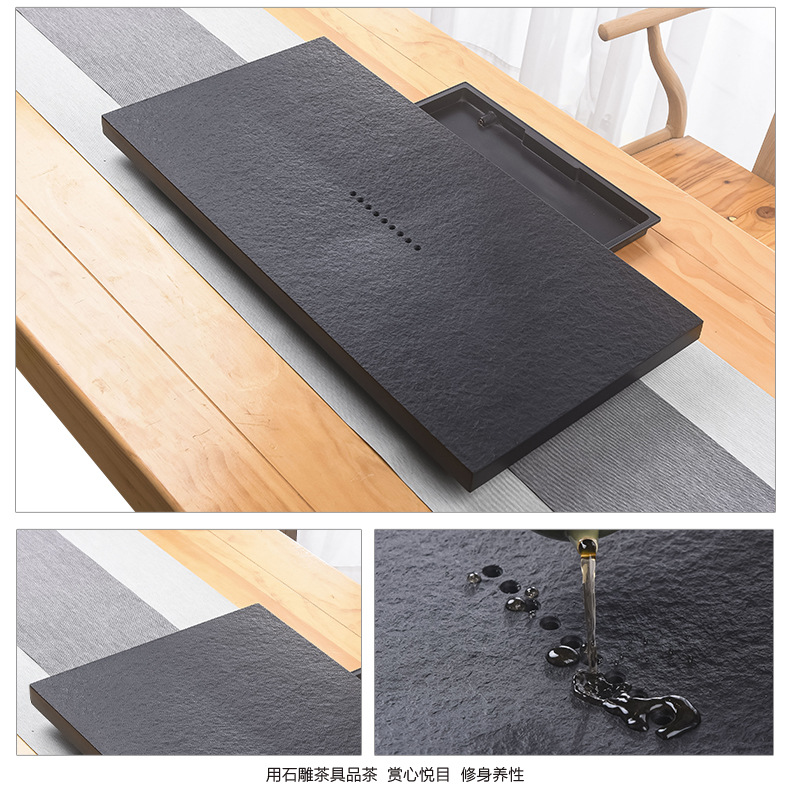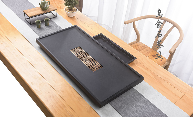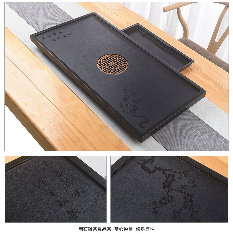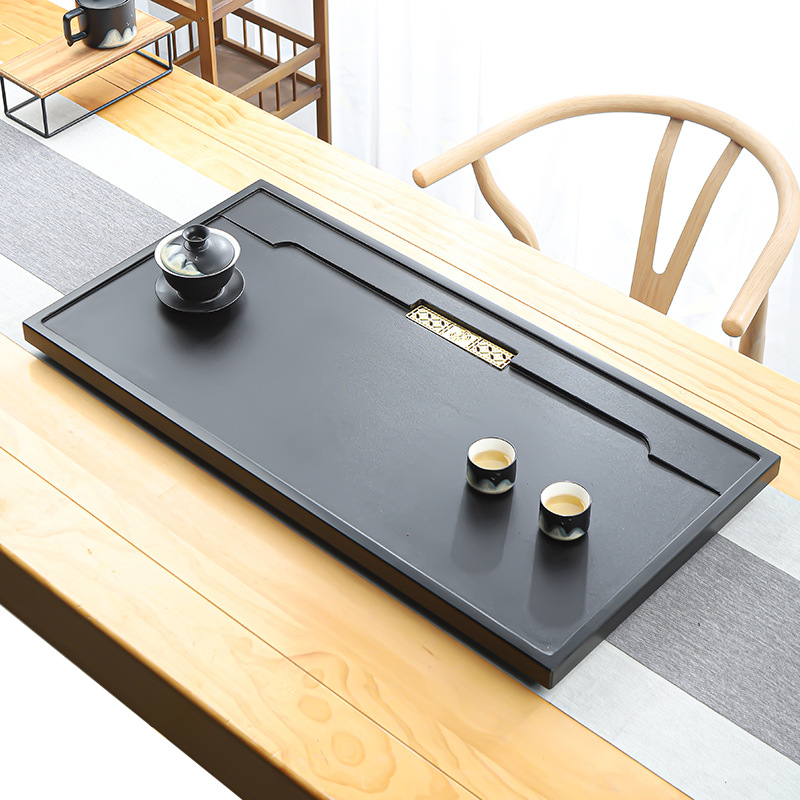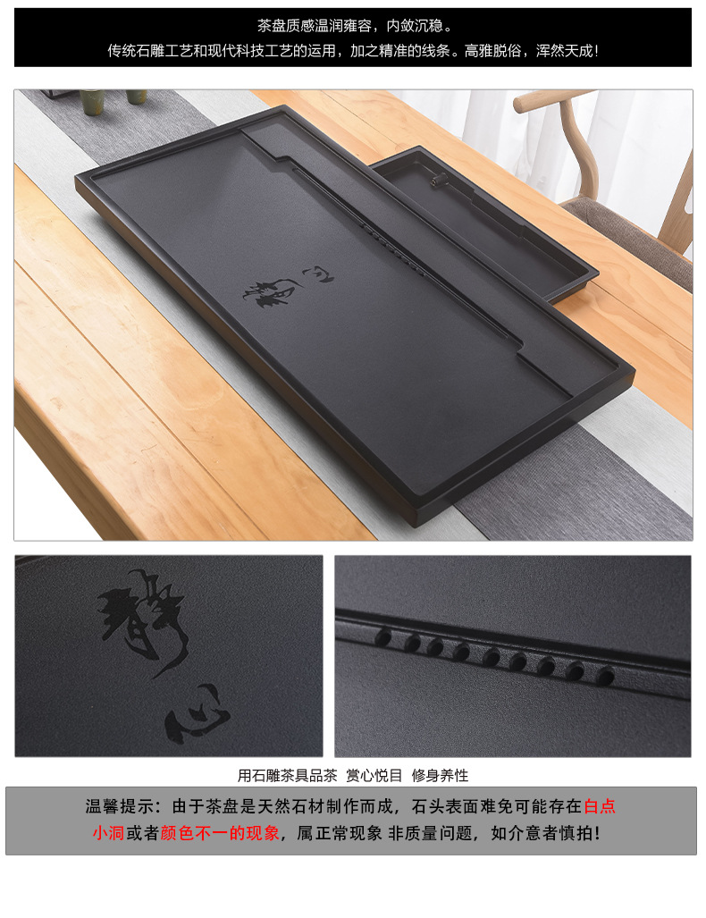天然黒金石ティートレイ排水家庭用シンプルモダンなリビングルーム石トレイ石シングルトレイ石茶テーブルトレイ