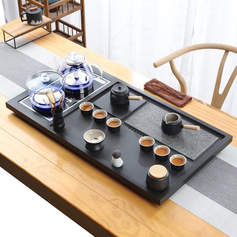 ナチュラル全体ブラックゴールドストーンティートレイ全自動オールインワンティーセットセット家庭用カンフー電気ストーブシンプルな大型ティーテーブル