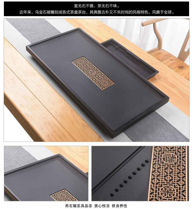 天然烏金石茶盤工夫茶台盤レリーフ現代客間家庭用石茶盤トレイ全体排水盤
