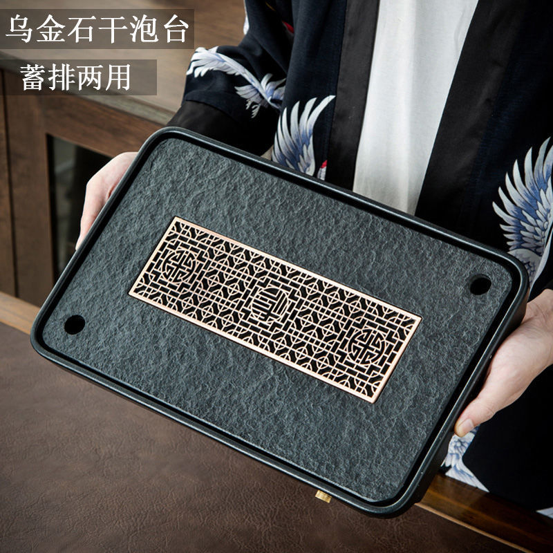 天然丸ごと烏金石茶皿トレー貯水式乾泡大サイズ家庭用排水引き出し茶台石材茶器
