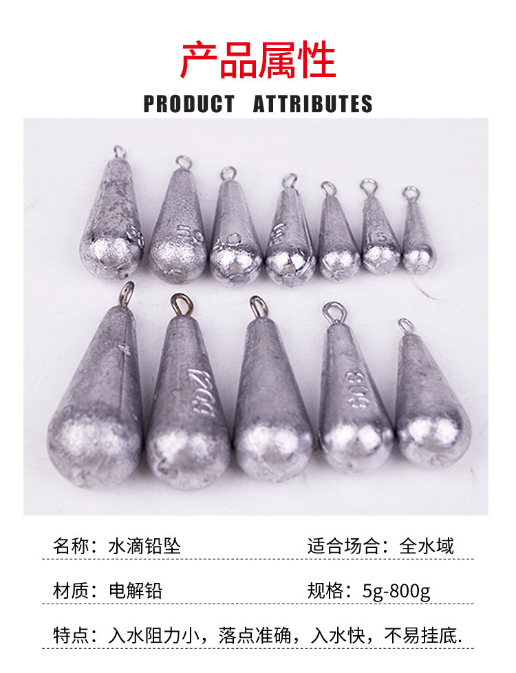 水滴铅坠钓鱼铅坠挂环铅坠抛竿甩杆远投铅坠串钩铅坠铅砣钓鱼配件