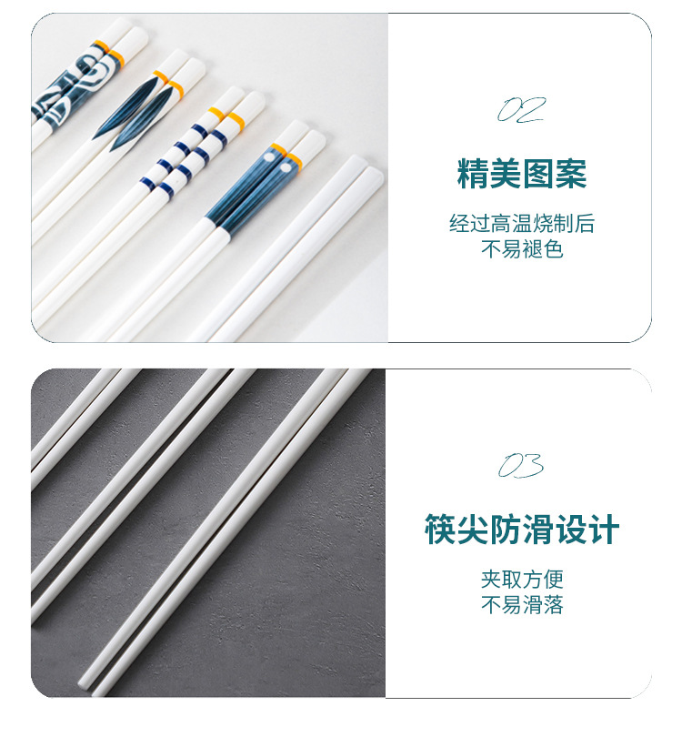 陶瓷筷子家用抗菌防霉防滑送礼高档环保易清洗筷骨瓷耐高温不变形