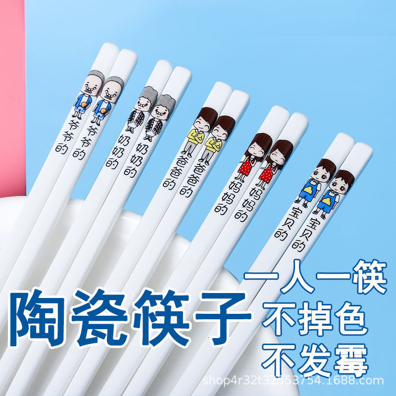 一家人陶瓷筷子防滑防霉高强度家用可爱卡通家庭专用亲子筷子套装
