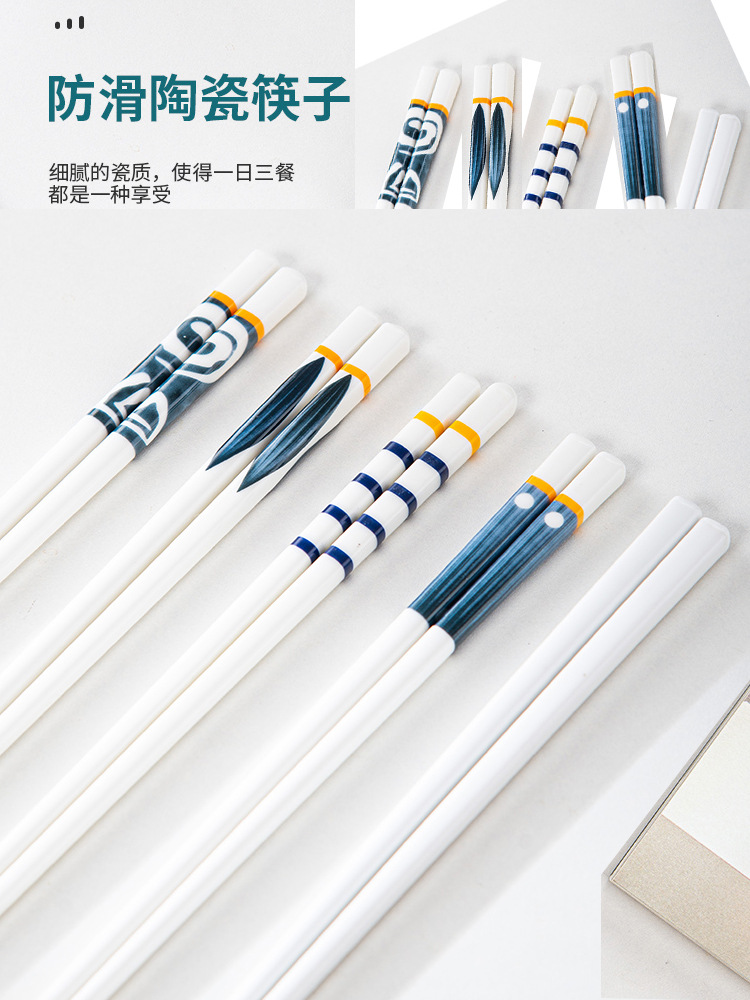 陶磁器箸家庭用新型抗菌防かび高級耐高温食品級骨磁器箸セットギフトボックス
