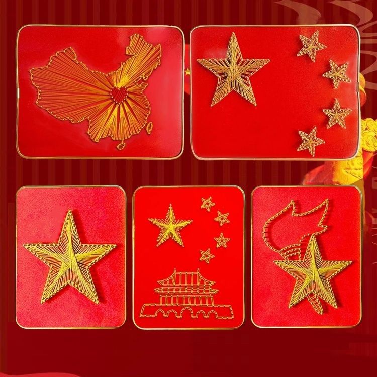 七一赤色中国党ネイルアート絵画DIY手作り糸絵画材料パッククリエイティブアクティビティ送料無料
