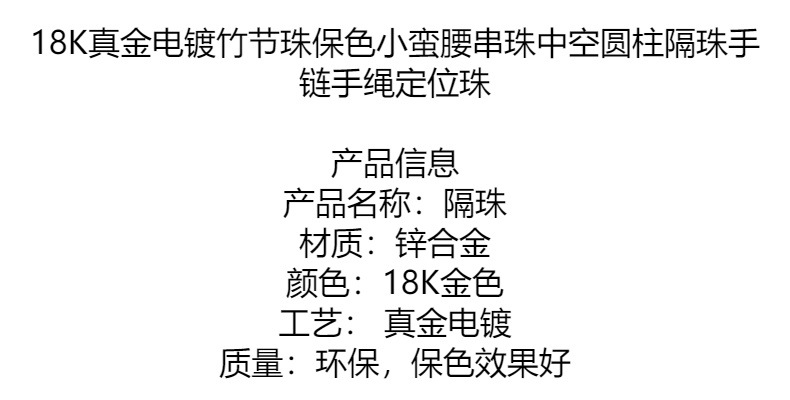 18k真金メッキ竹節珠保色小蛮腰ビーズ中空円柱隔珠ブレスレット手縄骨珠