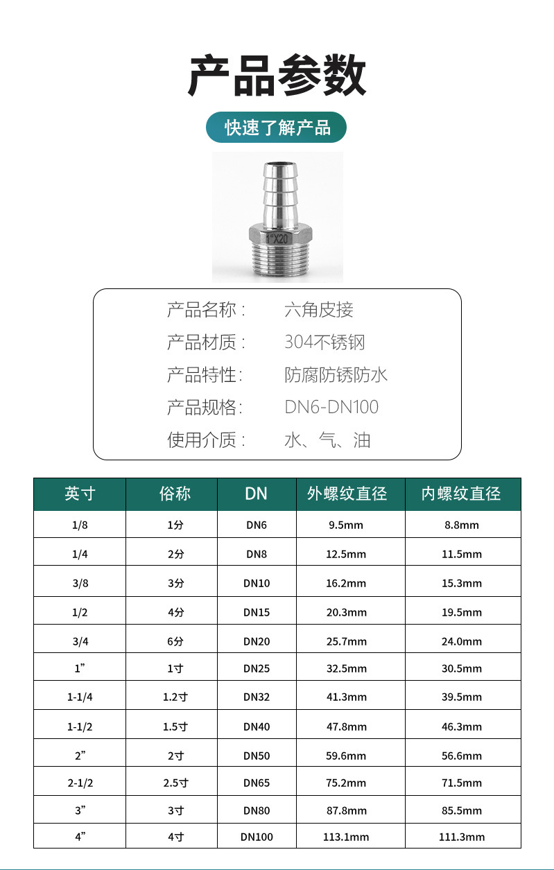 1ポイント/DN6/1/8*6,1ポイント/DN6/1/8*8,1ポイント/DN6/1/8*10,2ポイント/DN8/1/4*6,2ポイント/DN8/1/4*8,2ポイント/DN8/1/4*10,2ポイント/DN8/1/4*12,2ポイント/DN8/1/4*13,2ポイント/DN8/1/4*14,3ポイント/DN10/3/8*6,3ポイント/DN10/3/8*8,3ポイント/DN10/3/8*10,3ポイント/DN10/3/8*12,3ポイント/DN10/3/8*13,3ポイント/DN10/3/8*14,3ポイント/DN10/3/8*15,3ポイント/DN10/3/8*16,4点/DN15/1/2×6,4点/DN15/1/2×8,4ポイント/DN15/1/2*10,4点/DN15/1/2×12,4点/DN15/1/2×13,4点/DN15/1/2×14,4点/DN15/1/2×15,4点/DN15/1/2×16,4点/DN15*17,4点/DN15/1/2×18,4点/DN15/1/2×19,4点/DN15/1/2×20,4点/DN15/1/2×25,6ポイント/DN20/3/4*8,6点/DN20/3/4×10,6点/DN20/3/4*12,6点/DN20/3/4*13,6点/DN20/3/4*14,6点/DN20/3/4×15,6点/DN20/3/4×16,6点/DN20/3/4×18,6点/DN20/3/4*19,6点/DN20/3/4×20,6点/DN20/3/4×25,1inch年/DN25*8,1inch / DN25*10,1inch / DN25 * 12,1inch / DN25 * 13,1inch / DN25 * 15,1inch / DN25*16,1inch / DN25 * 19,1inch年/DN25*20,1inch年/DN25*25,1inch / DN25 * 27,1inch / DN25 * 32,1.2inch年/DN32/11/4*25,1.2inch / DN32*26,1.2inch / DN32 / 11/4 * 32,1.2inch / DN32 / 11/4 * 38,1.2inch / DN32 / 11/4 * 40,1.5inch / DN40 / 11/2 * 25,1.5inch / DN40 / 11/2 * 32,1.5inch / DN40 / 11/2 * 38,1.5inch / DN40 / 11/2 * 40,1.5inch / DN40 / 11/2 * 50,2inch / DN50*32,2inch / DN50*38,2inch年/DN50*40,2inch / DN50*50,2.5inch年/DN65/21/2*65,3inch / DN80*80,4inch / DN100 * 100