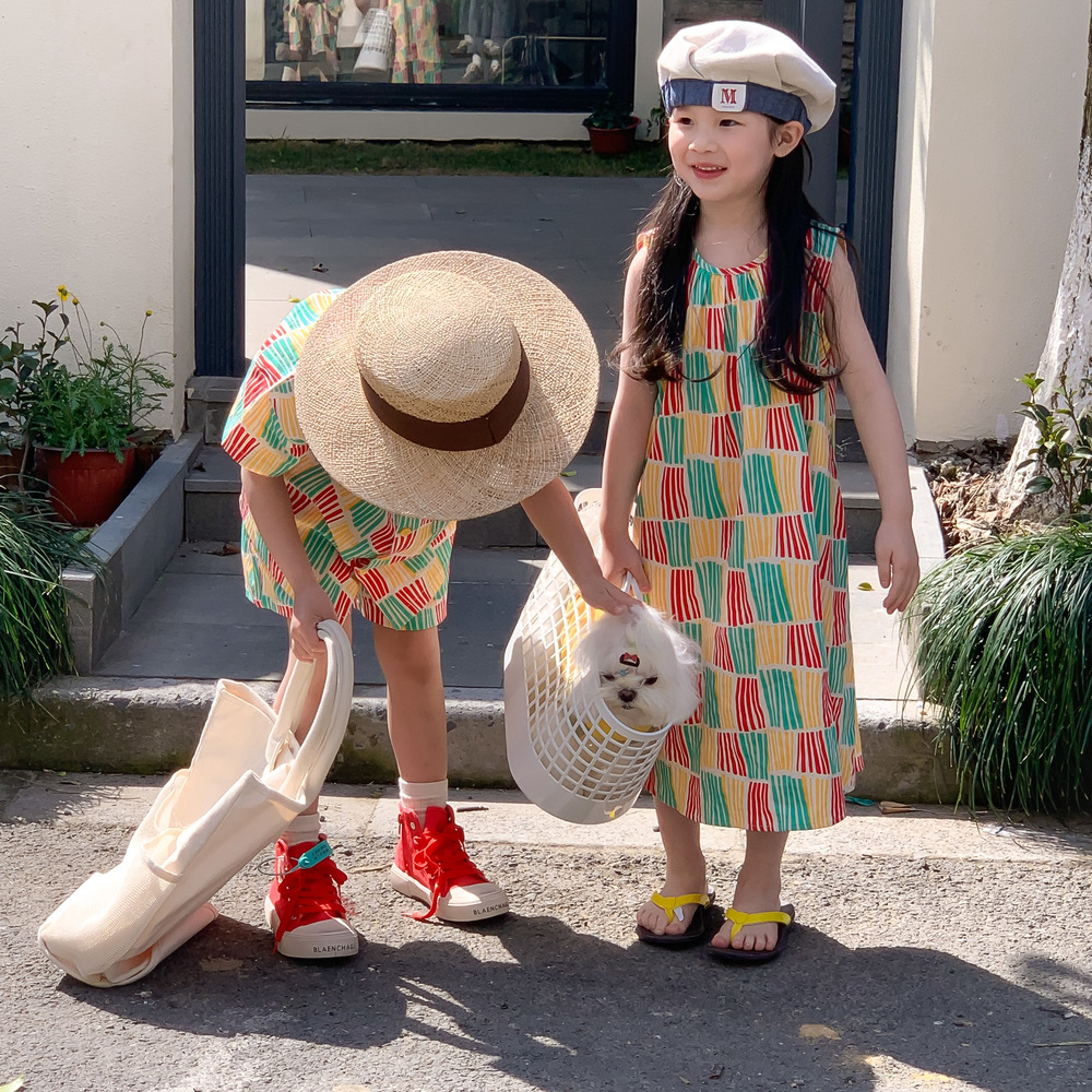 子供用兄妹お揃い服2026夏物森系韓国風セットストライプ柄タンクトップスカート半袖ショートパンツセット末小蒙